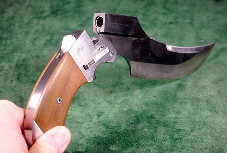 Жаль только, что в нём всего один патрон и тот шумный, с огнём во время выстрела и вонючий порохом – после. Наш-то НРС получше будет – он бесшумный, беспламенный и если нужно, то им ещё можно проволочное заграждение порезать. Его все знают, поэтому показывать не буду. Я лучше покажу другой, американский. Он и брутальнее других, и патронов в нём больше, потому что в ручке целый револьвер спрятали. Ручка, правда, толстая получилась. Но, с другой стороны, такой ручкой если по балде врезать – мало не покажется: