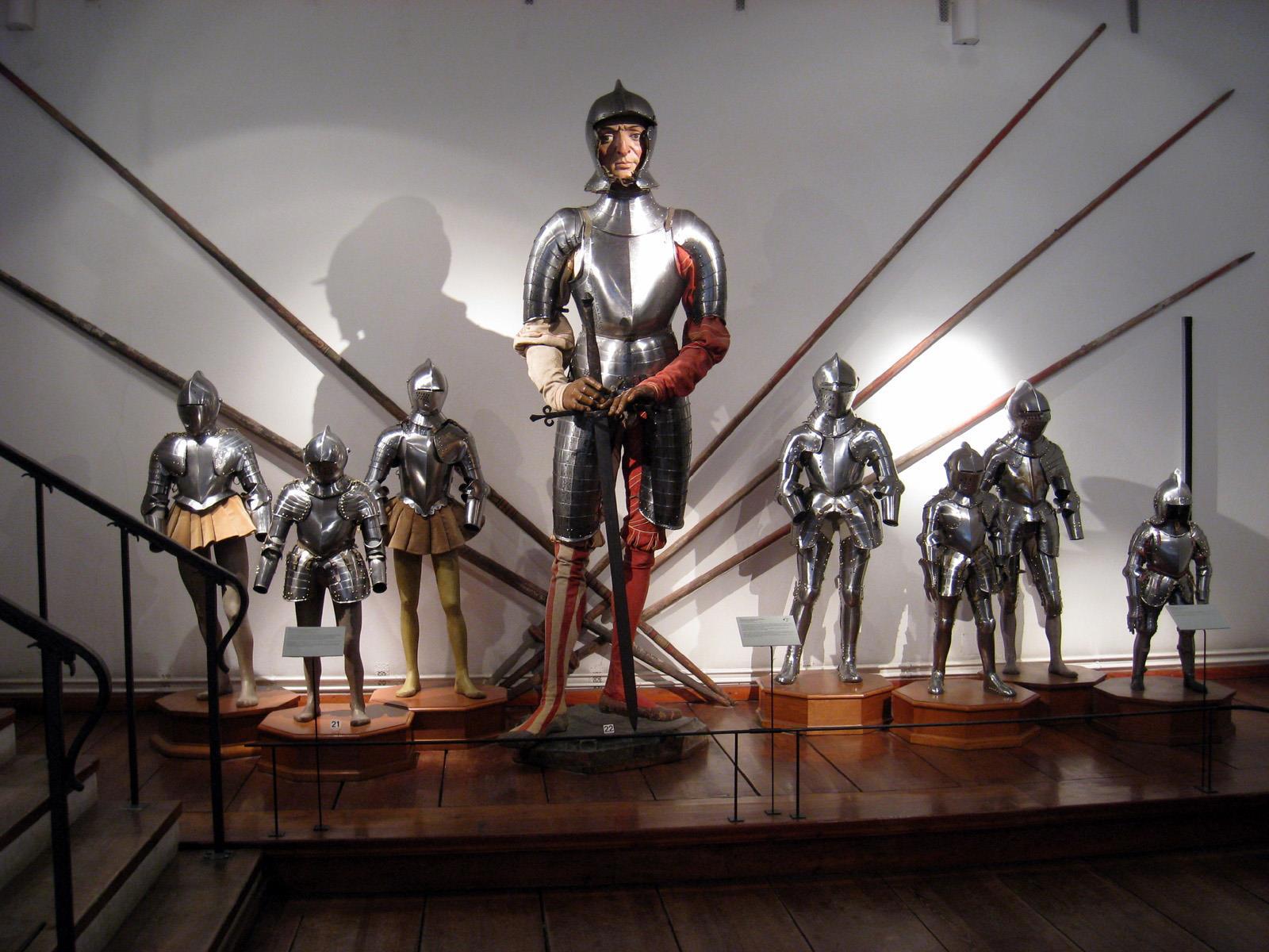 Я добрался до компьютера, проверил информацию и узнал, что в Инсбруке действительно есть замок, Schloss Ambras. В его арсеналах сохранились подлинные доспехи XV-XVI веков из императорских коллекций. В одной из витрин оружейных палат замка Амбрас можно увидеть следующее: