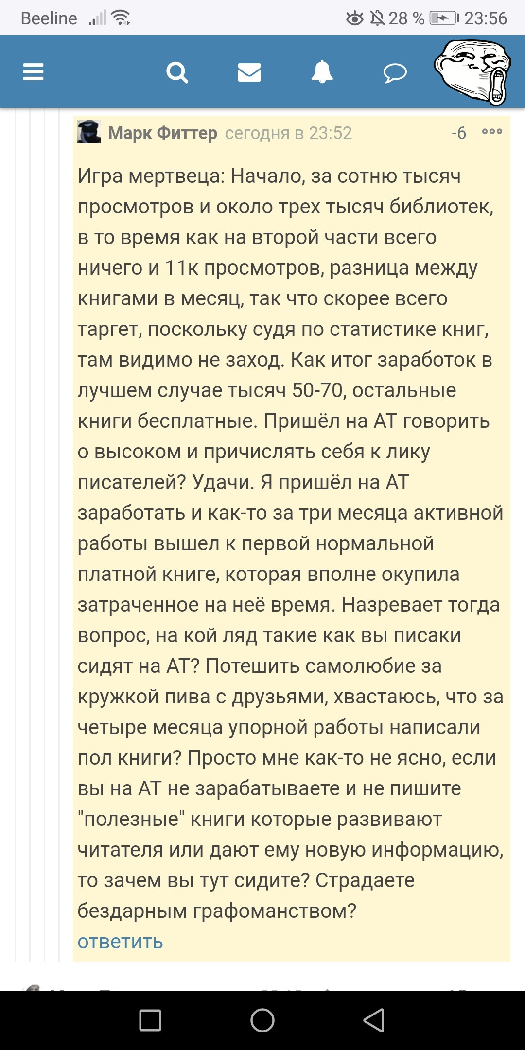 У тебя нет четкой стратегии: как ты продашь свою книгу. Вот прям вплоть до того, как выглядит твой конечный клиент. Да, клиент. Читатель – это твой клиент. Не одухотворенный одуван, ищущий, кто наставит его на путь истинный. А чел, который хочет погрузиться в ванну кайфа, которой ты (?) его снабдишь. Уж, от чего он кайфует – каждому свое. Академка, ЛитРПГ, детективы…