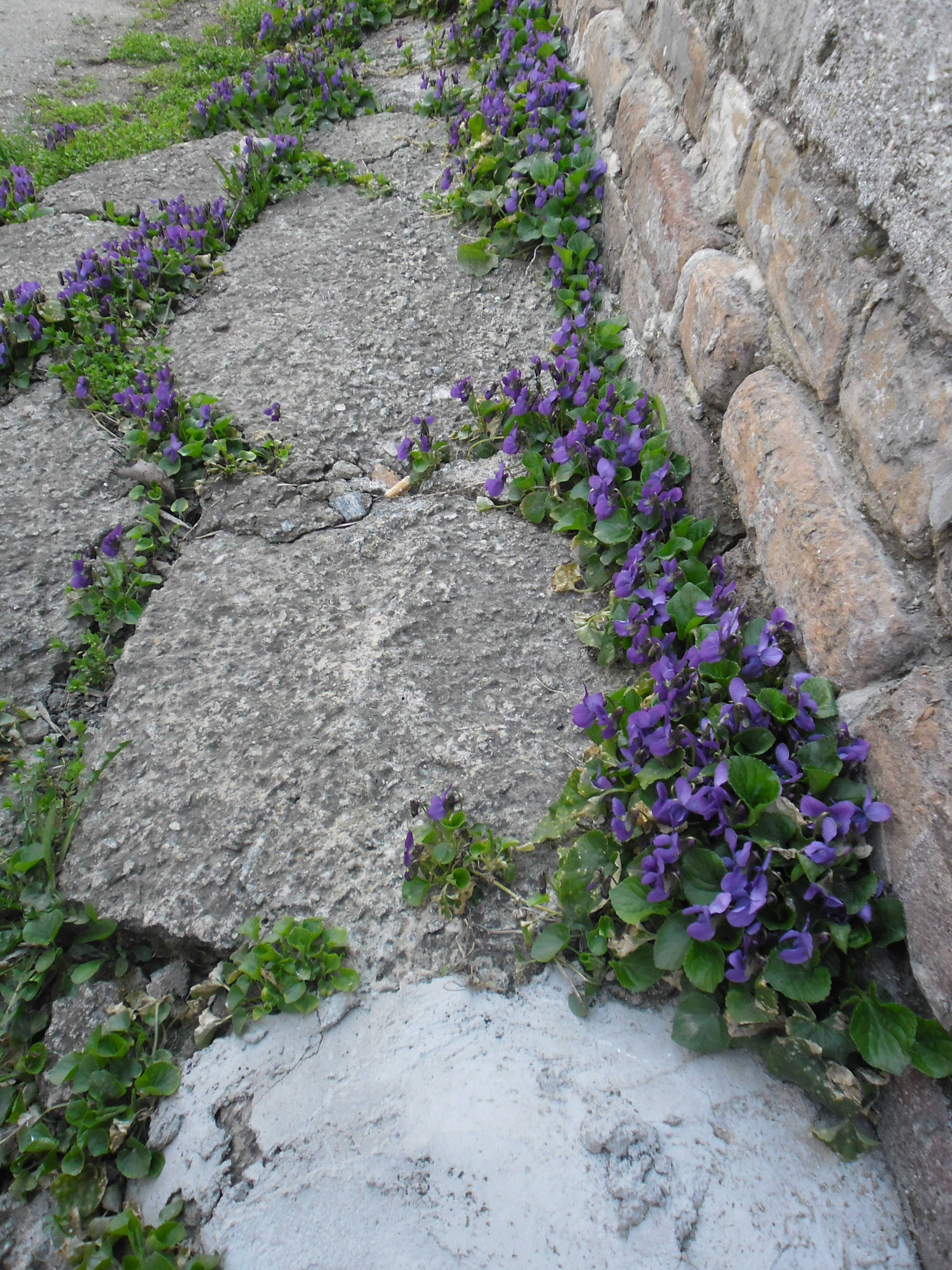 Я всегда весной ходила на одну улочку, где стоял старый дом с потрескавшейся отмосткой. В трещинах росли кустики фиалок и когда они расцветали – это было очень красиво. Сквозь камни, на камнях. А потом дом продали, новые хозяева отремонтировали фундамент и сказки не стало.