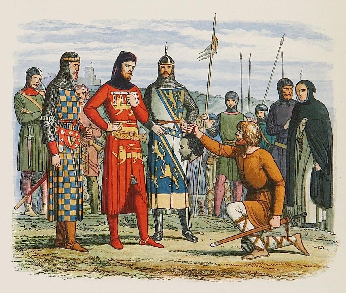 (Ланкастер демонстрирует голову Пирса Гавестона графам Херефорду и Арунделу)