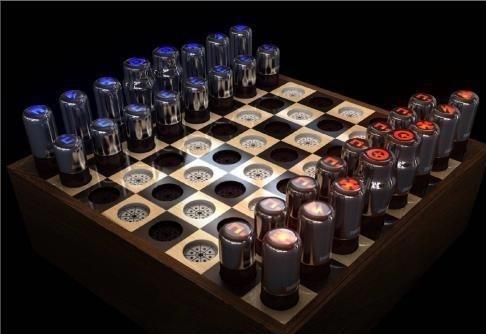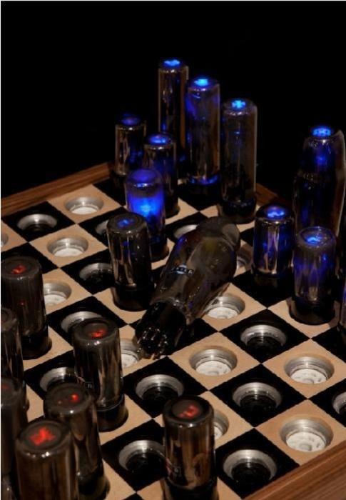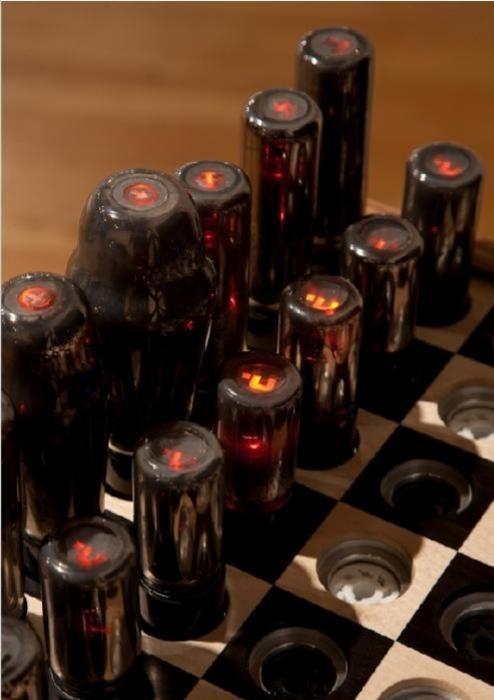 Шахматы в виде работающих радиоламп из старого телевизора...