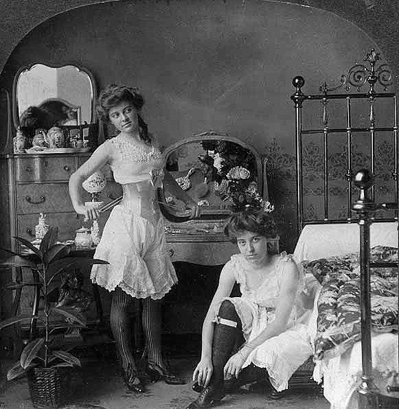 И немного картинок дам с пониженной социальной ответственность того времени и индейцев. У дамы рядом с биллиардным столом очень хорошо заметна особенность конструкции панталон.