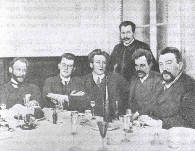 Слева направо: П. Д. Маныч, А. Т. Аверченко, А. А. Радаков, А. И. Котылев, А. И. Куприн.