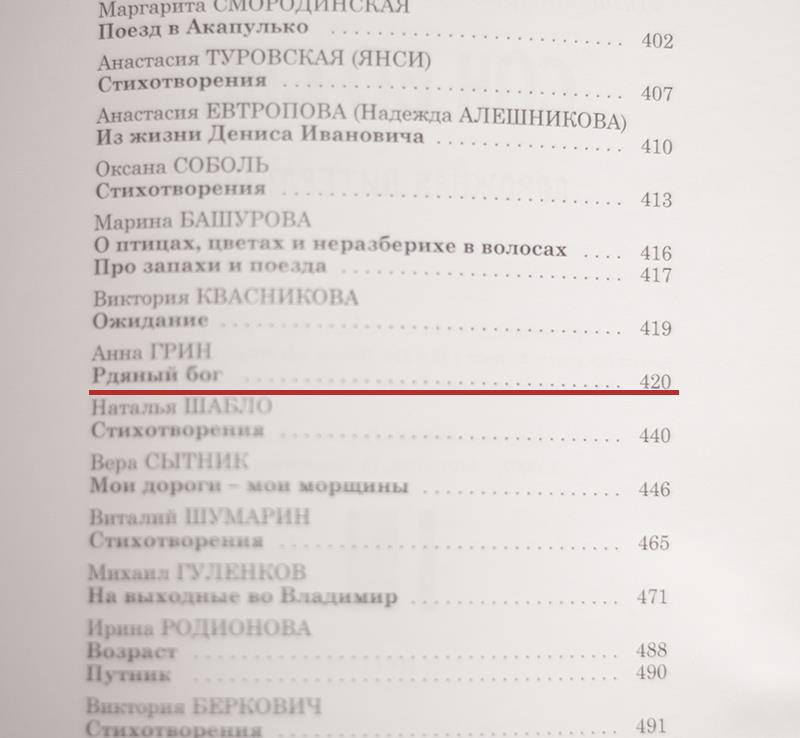 Автор: Анна ГринВ наше электронное время, когда печать на бумаге уже не гарантия качества текста, а всё чаще просто ачивка, дополнение к электронным "заслугам", или личное вложение автора, хочу сказать, что всё же нечто особенное в бумажной публикации есть. В чёрных буквах, бегущих по белой бумаге, в запахе типографской краски, в тихом шорохе страниц. В имени над рассказом, в строке из содержания, есть во всём этом нечто волшебное, личное, из детства. Из того времени, с фонариком под одеялом, когда книга была единственным окошком в иной мир, бегством от быта по дороге приключений, космическим кораблём на другую планету, к другим людям, к героям и подвигам. Когда писатель был демиургом, рулевым на твоём пути, а потрёпанный томик на полке вызывал больше эмоций, чем сейчас может дать крутой гаджет. Есть нечто особенное, почти магическое, даже в маленьком кусочке своей собственной книги.