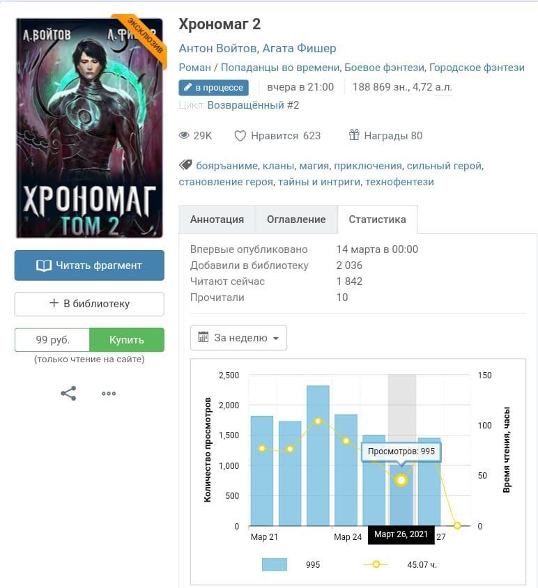15 марта 2021 года второй том этого романа стал лучшим на АТ и в отношении популярности и в отношении продаж.