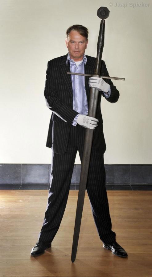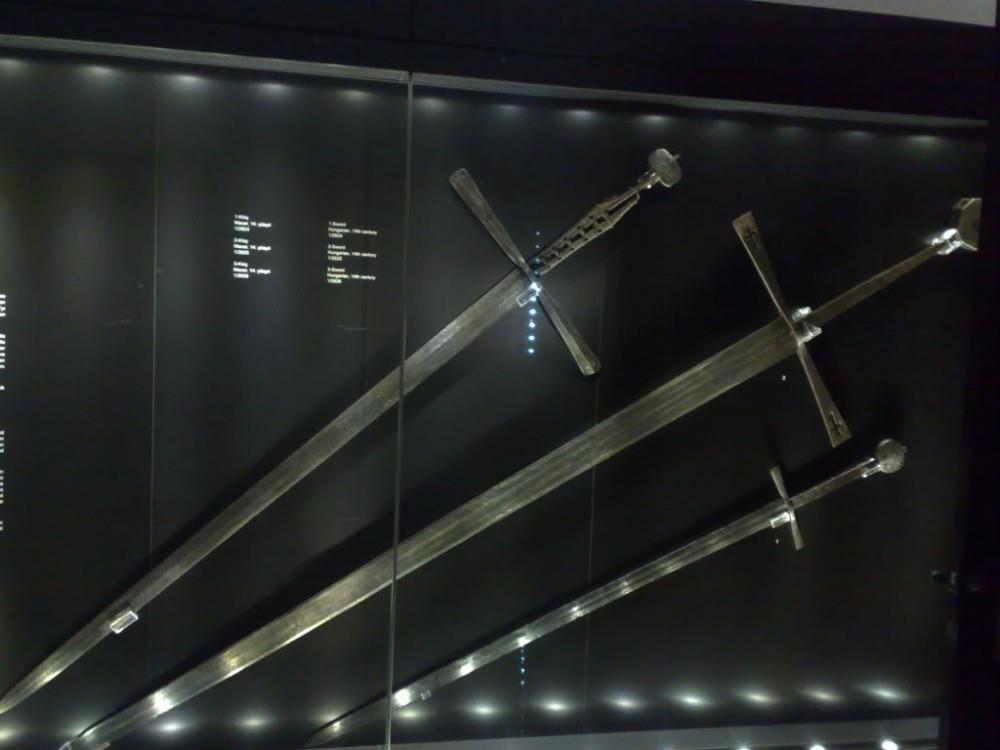 - Меч «Большого Пьера», который Пьер Герлофс Дониа (1480-1520 гг.).По легенде его владелец был человеком выдающегося роста и силы, так что и меч ему под стать. Общая длина 2.15 метра, вес 6.6 килограмм. Собственно, считается, что изначально он тоже был изготовлен как парадный, пока однажды новый хозяин не решил сделать его боевым.
