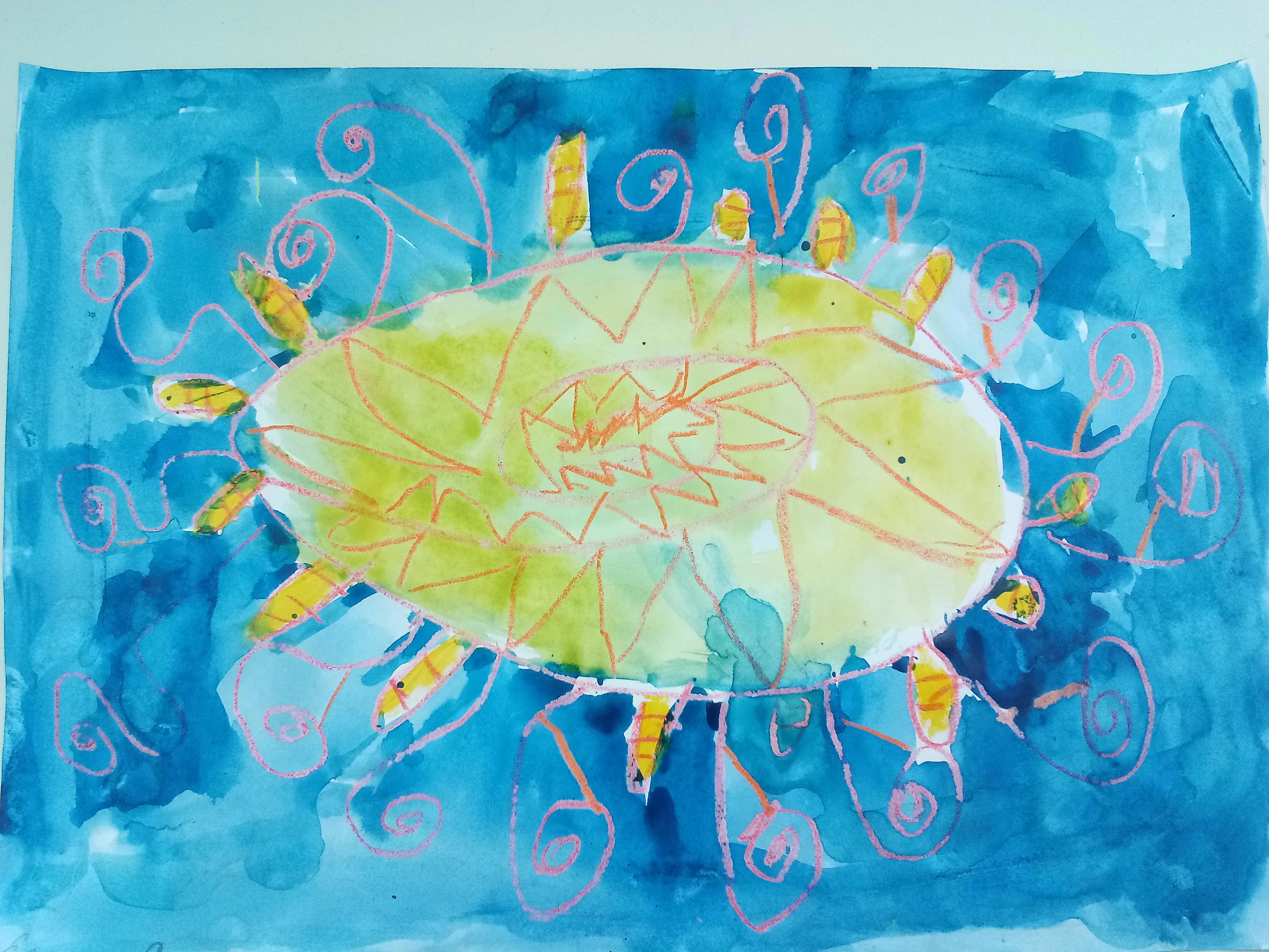 Ладно, речь не об этом. Вчера я обещала одному хорошему человеку поискать детские работы. Это рисунки моих бывших учеников. Декоративные солнышки
