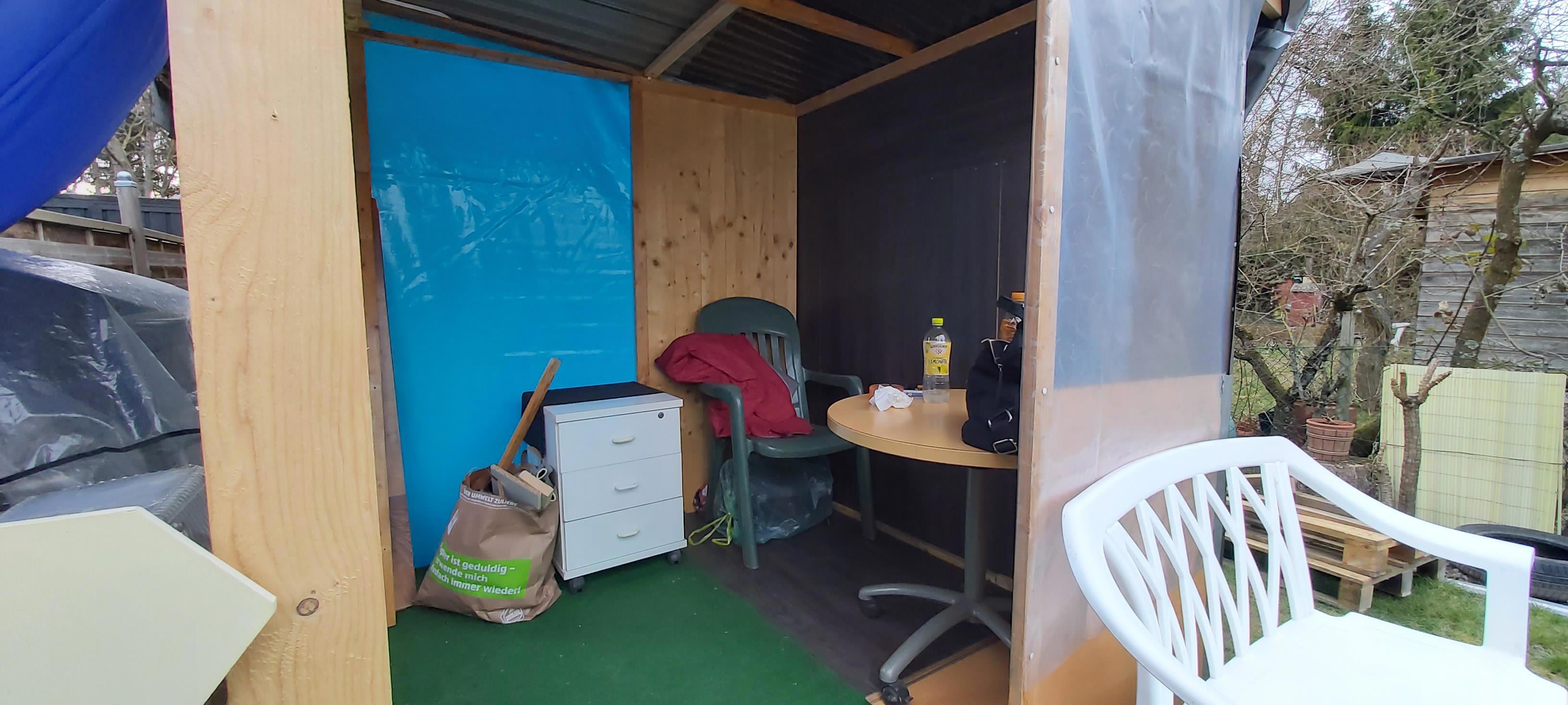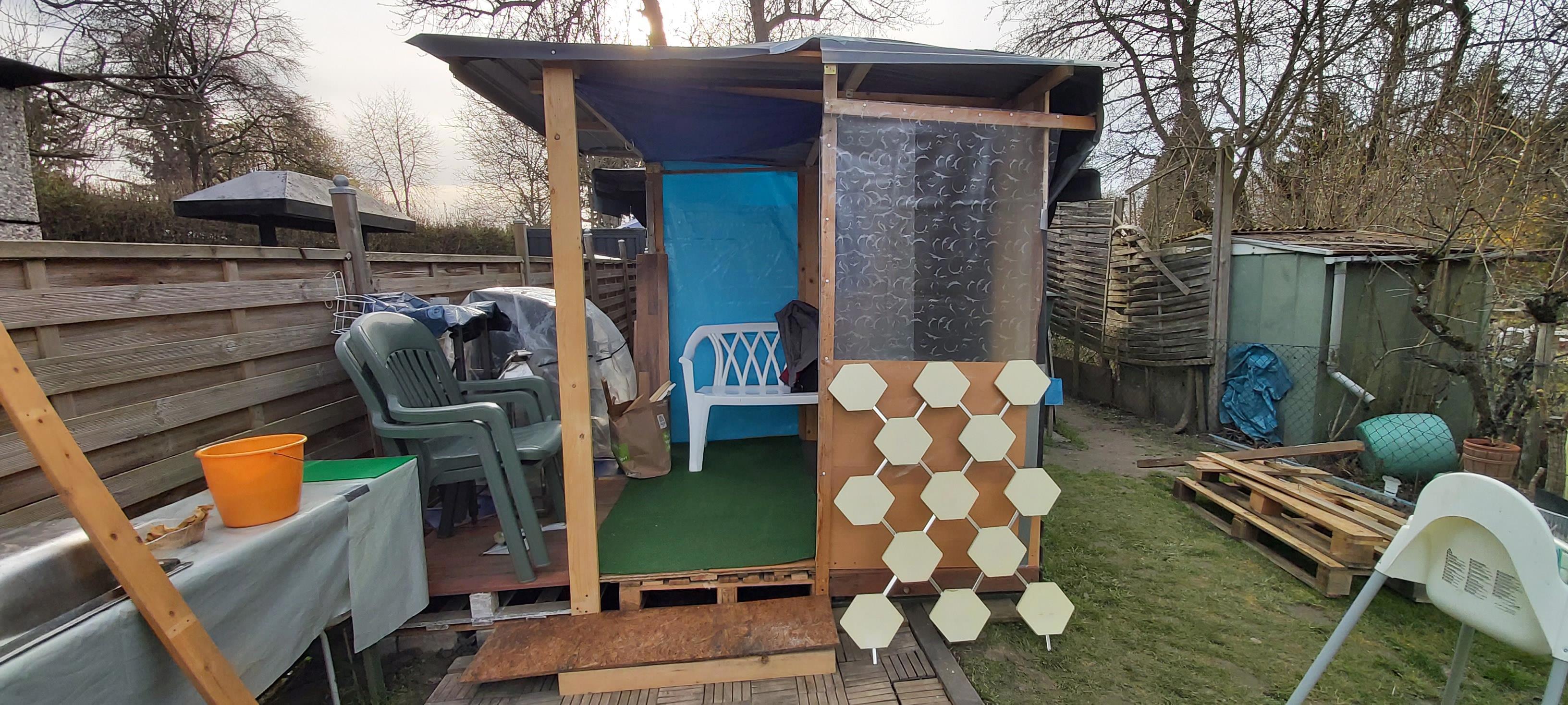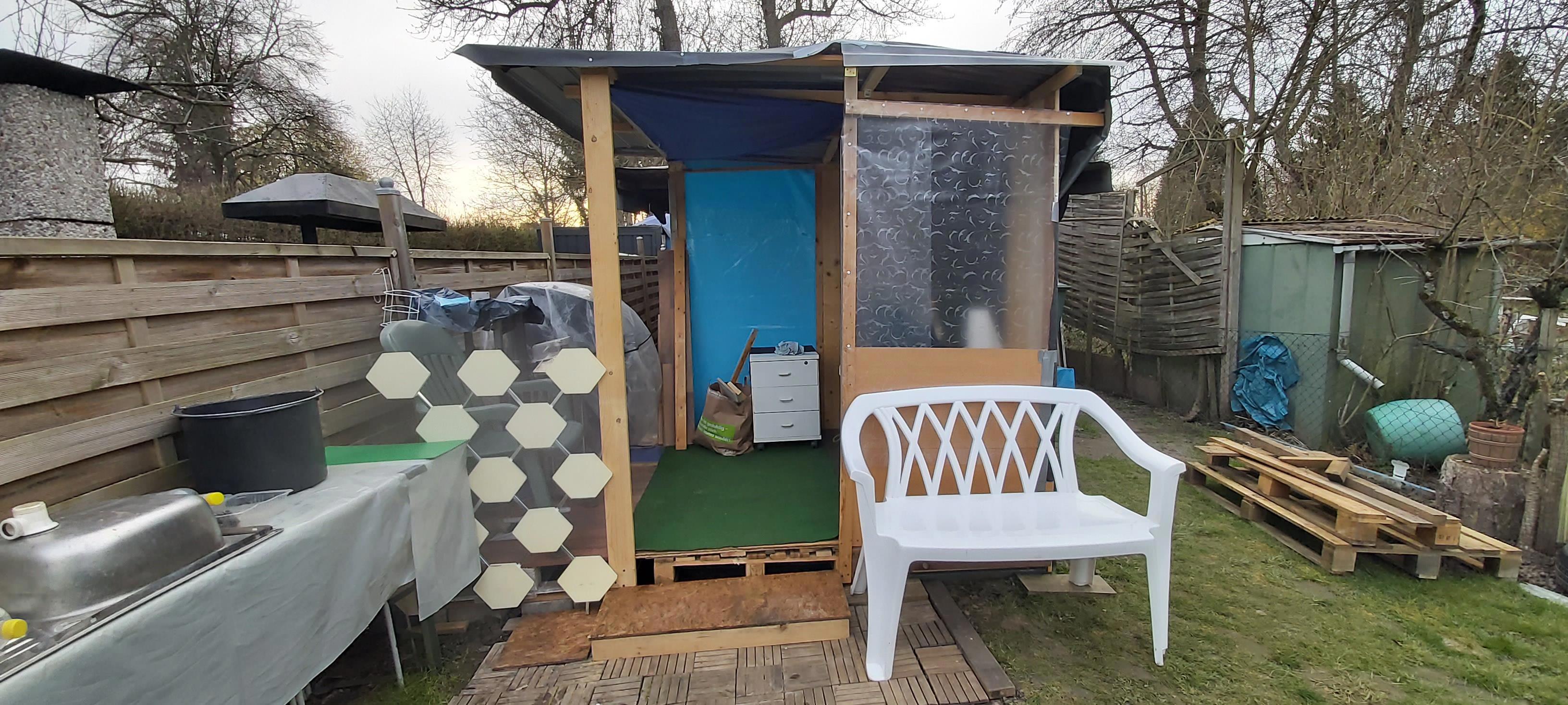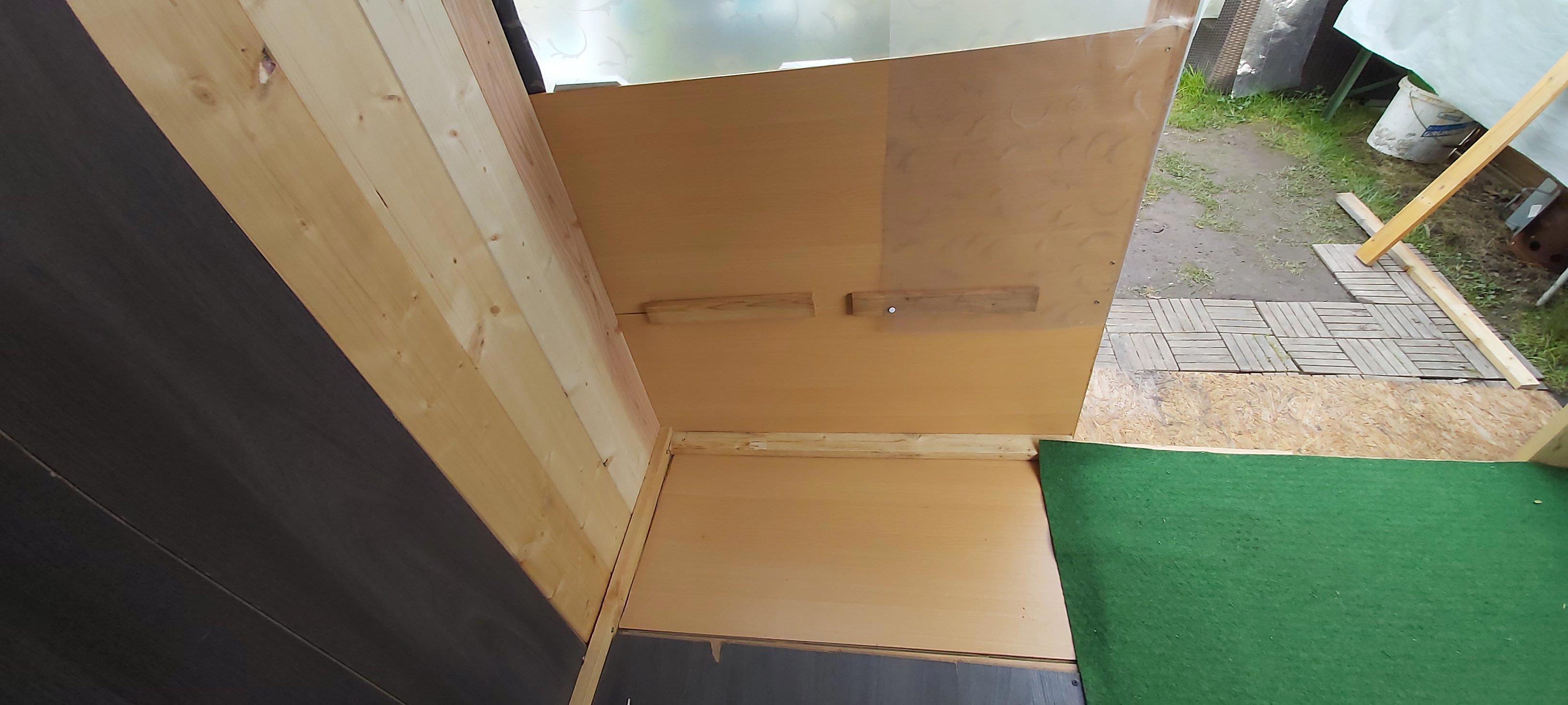 Автор: ЛавэнИтак, берём фанеру от шкафа и сандалим, як стенку, и на пол. Две деревяшки лепим, чтоб щели не было, для прочности.