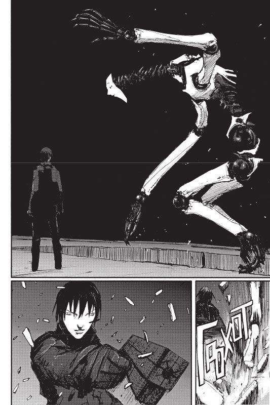Помню, как несколько лет назад смотрела аниме по другой манге Цутому Нихея "Рыцари сидонии", и хотя графика там была на троечку (проклятое 3D), в начале одной из серий оно вдруг стало на пятерочку и появился Килли, а потом вывернули, что это герои просто телек смотрели. Но меня тогда эти пару минут накрыли просто такой волной фанатизма, что первые тома я пошла перечитывать.