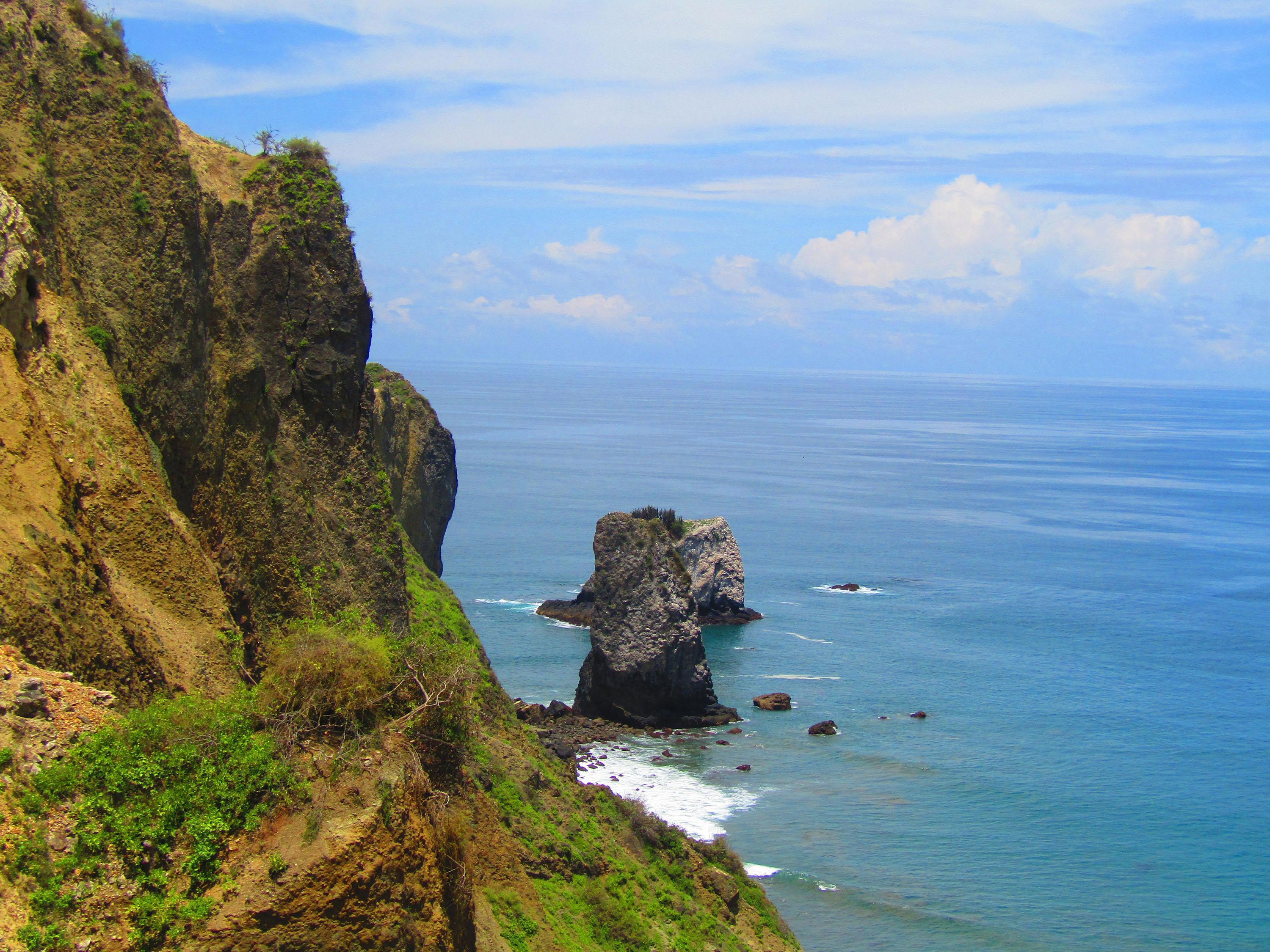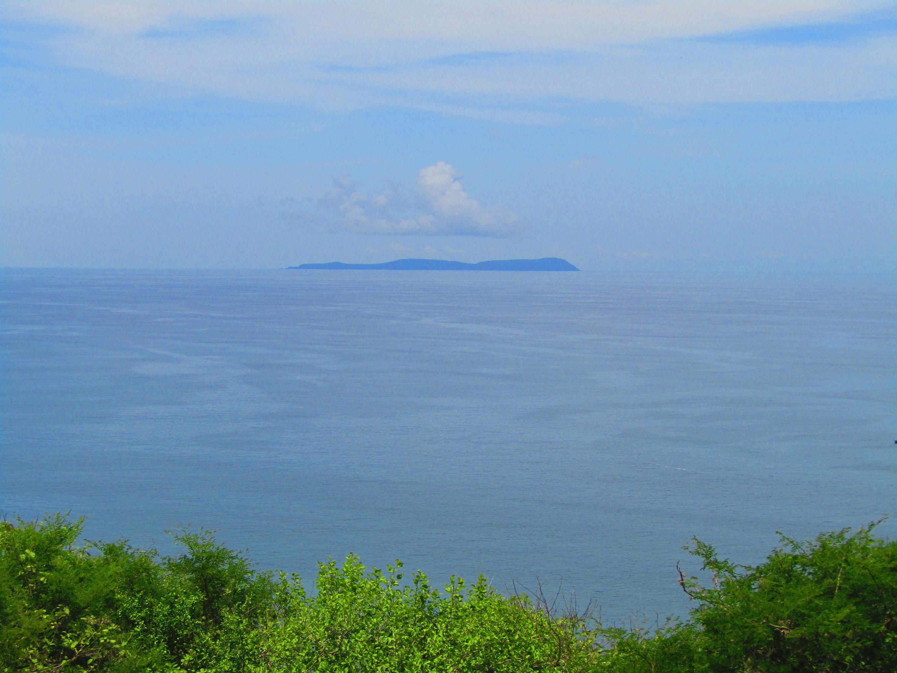 Остров на горизонте - Исла Дэ Ля Плата или Серебряный остров. По легенде именно здесь зарыл сокровища Дрейк. За столько лет клад так никто и не нашел. Возможно, все еще лежит.)) По другой легенде серебряным остров стали называть из-за отходов естественного происхождения белого, то есть серебряного, цвета, оставляемых птицами на скалах (птиц до неприличия много, отходов, соответственно, тоже). Серебряный называют Галапагос для бедных, то есть, водится на нем все то же самое, но рукой подать и стоит гораздо дешевле. И, первая легенда гораздо красивее. Вот.