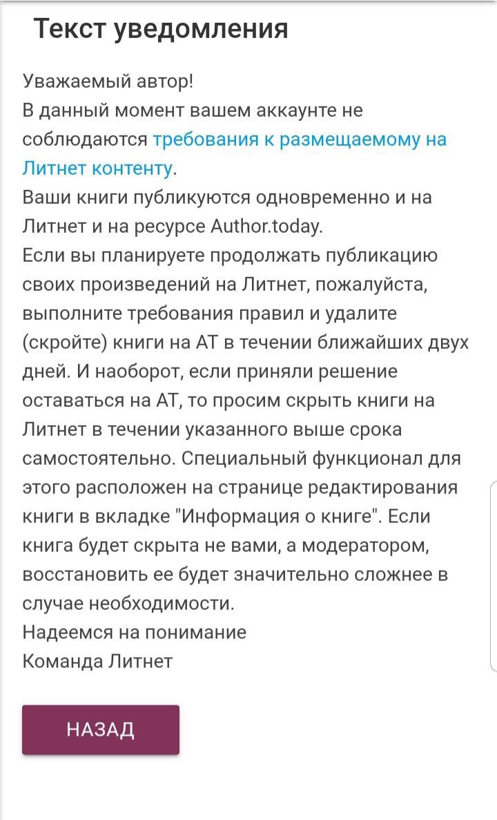 Администрации литнет, которая, видимо, читает меня на АТ: