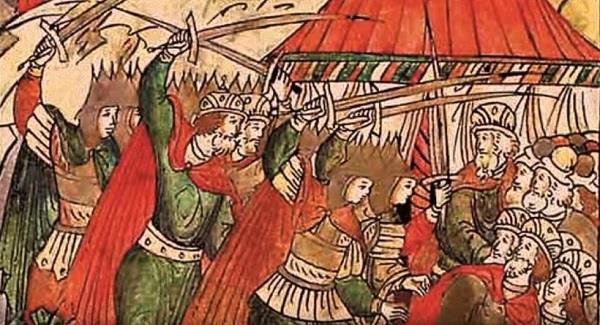 А когда гости уже порядком подпили, в шатрах зазвенели сабли наемников, и началась жатва смерти.