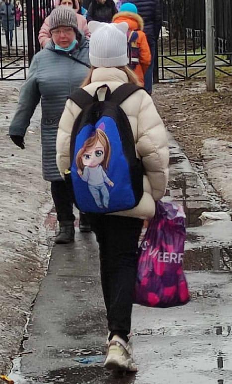 Отводила я сегодня дочку в сад. Пасмурно, дождливо, я еще не проснулась толком, Василиса тоже. Подойдя к калитке, ведущей на территорию в сад, я бегло осмотрела идущих по дорожке людей, зацепила взглядом маленькую девочку, спешащую в школу перед нами, отвернулась.. И тут в лучших традициях жанра: "Стоп, что?" Мой сонный мозг еще не вдуплил, что именно я увидела, поэтому я остановилась и уставилась на удаляющуюся девчушку.