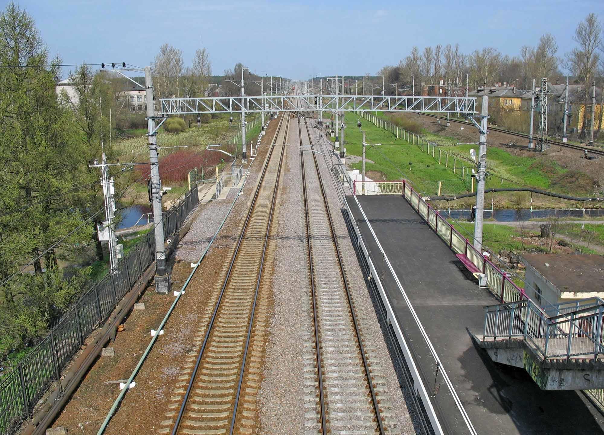 Железная дорога Санкт-Петербург - Москва. Снимала с виадука станции Саблино. Идеально ровная ветка для скоростных поездов. Смотрим в сторону Москвы:
