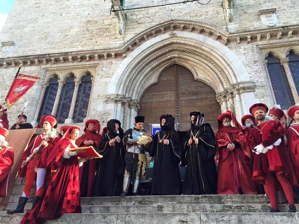 В 1549 году Павел III умер. Его сменил Юлий III, более мягкий человек. Чтобы показать своё благожелательное отношение к Перудже, он вернул городским выборным от гильдий их исконное название приоров и вернул золотые цепи и малиновые мантии. Но крепость Rocca Paolina оставил на месте. На всякий случай...
