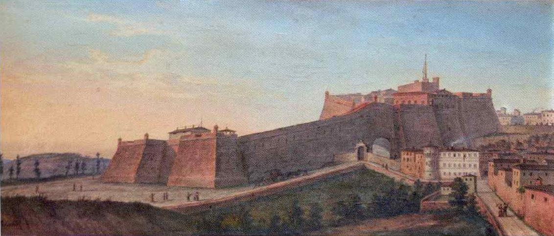 Джузеппе Росси. Вид на Rocca Paolina в Перудже. Середина XIX века.