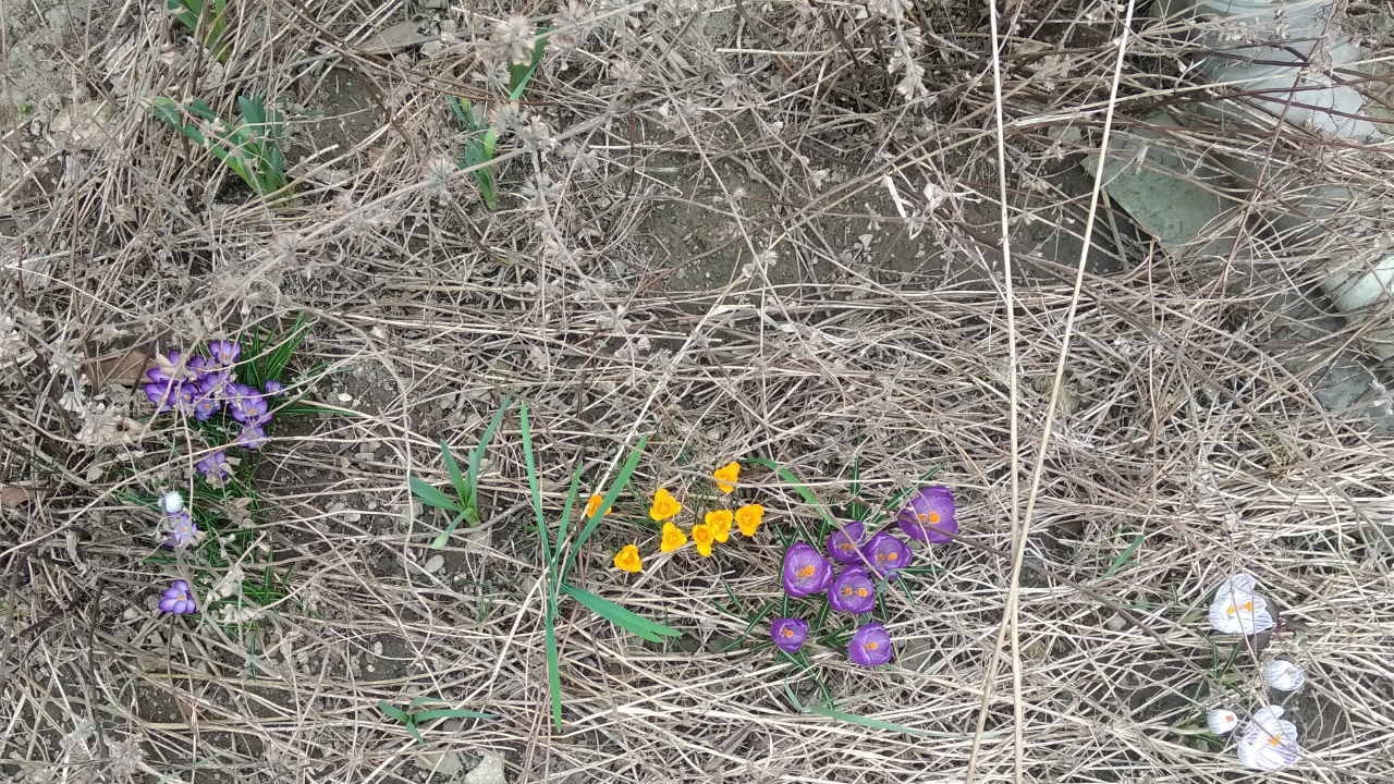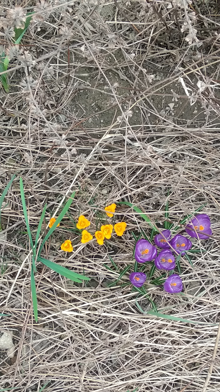 Сквозь безжизненные прошлогодние сорняки пробились... Это чудо. Хоть обычно меня такое не интересует, но это прекрасно.