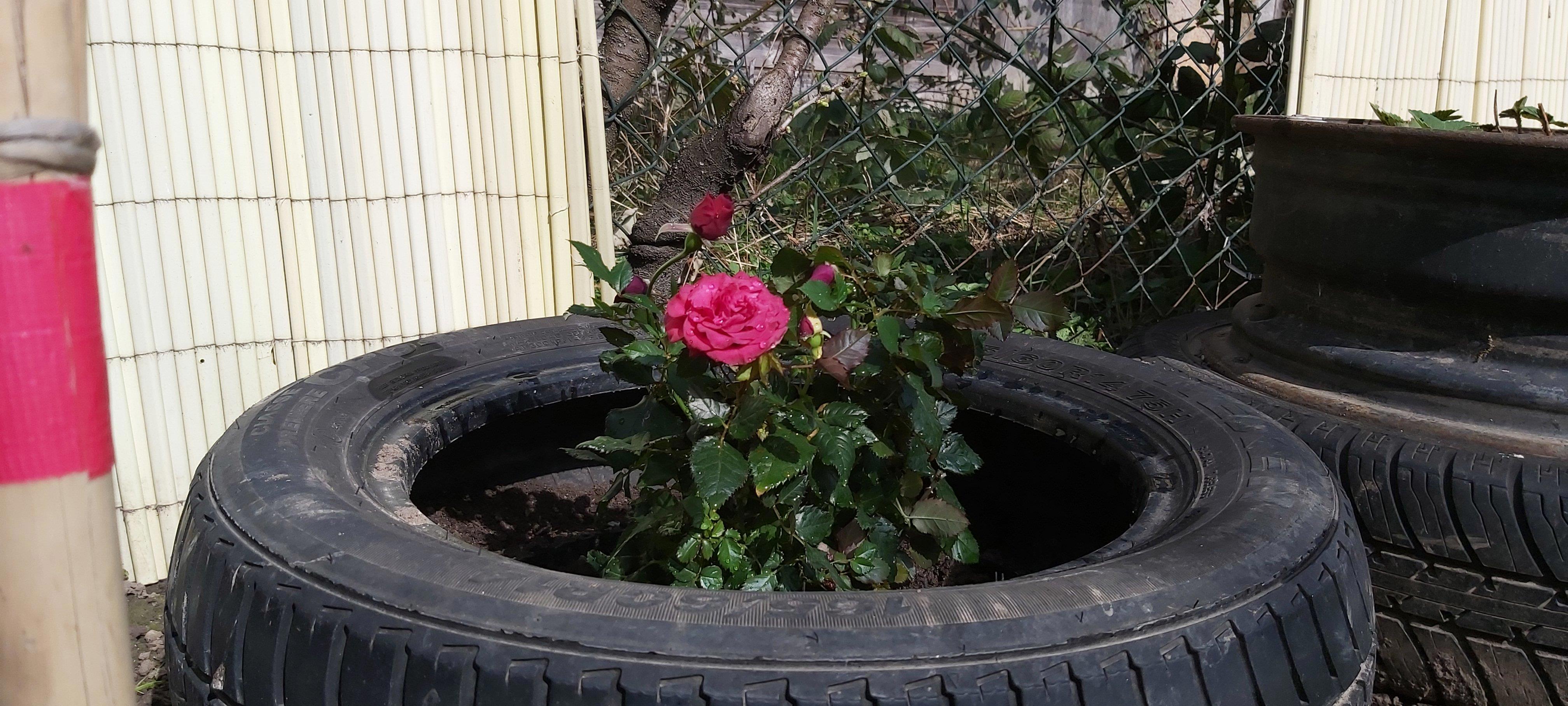 Просто радует глаз. (Розу посадила, было бы лучше если шины покрасить, но мы экономим)