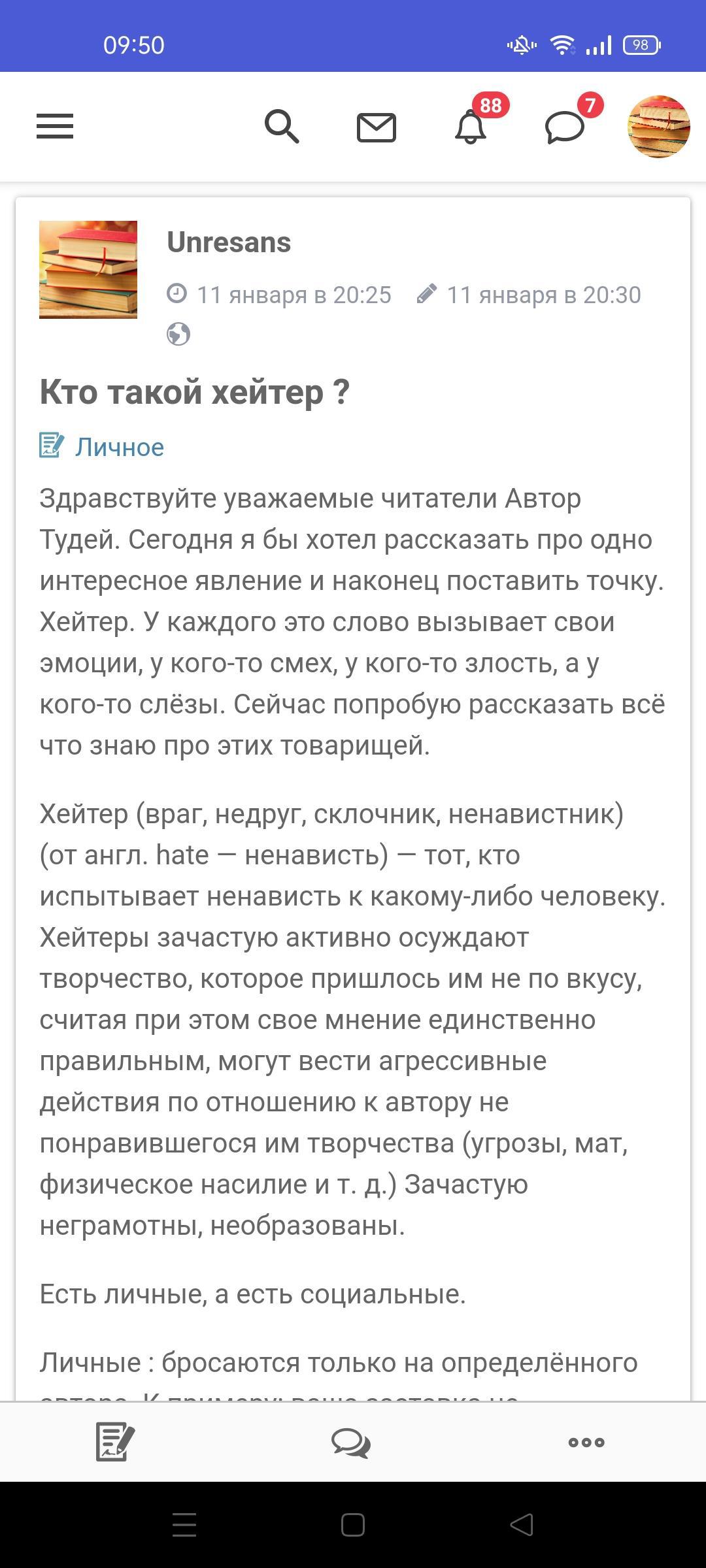 Автор: UnresansВ моей статье " Кто такой Хейтер " которое было опубликовано в начале января - до сих пор ведутся споры. Это пожалуй единственная живучая моя статья, не представляю как люди её находят ну да ладно. На ваше мнение почему здесь ещё продолжаются споры ?