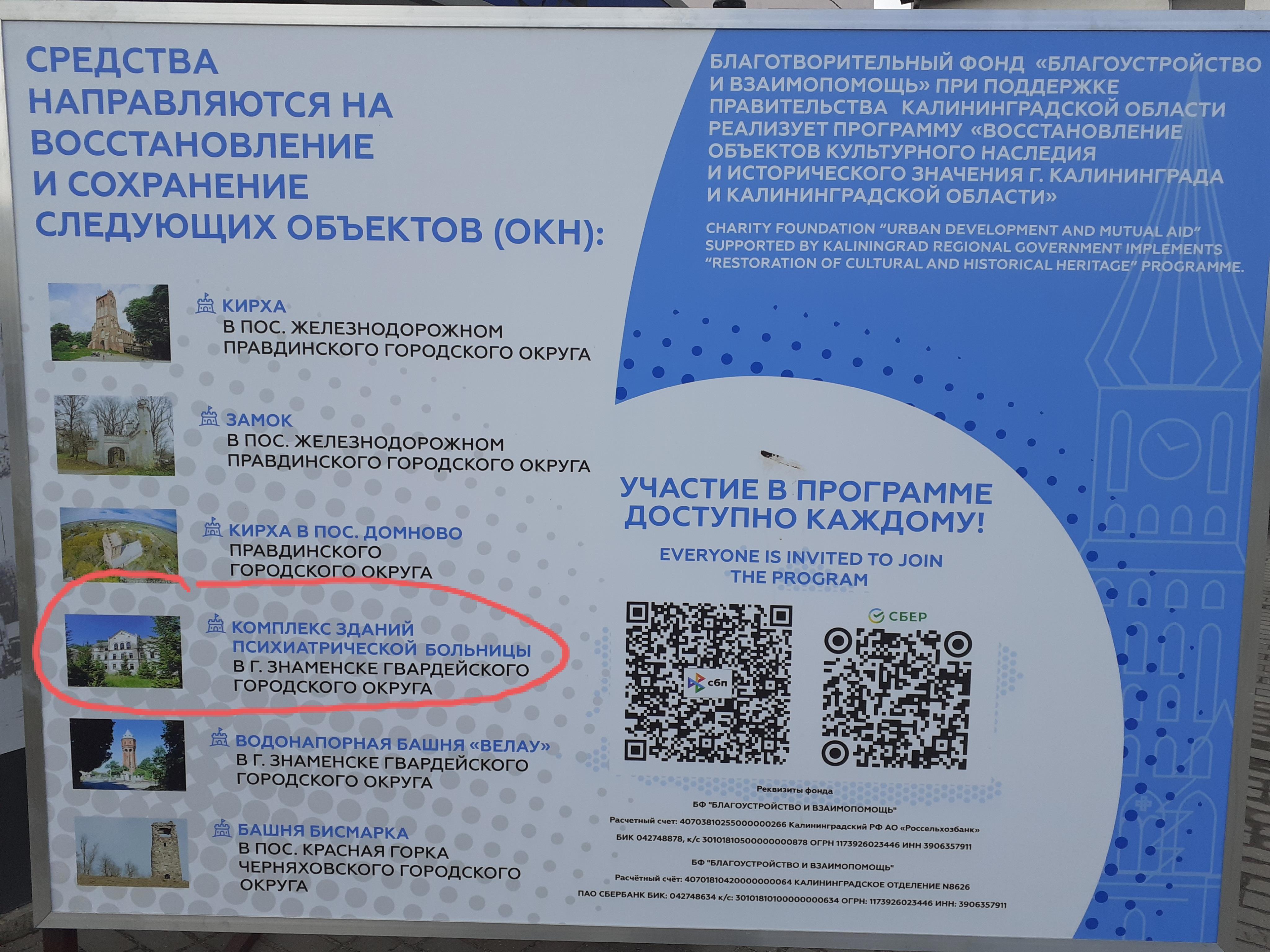 Программу "Восстановление объектов культурного наследия и исторического значения г. Калининграда и Калининградской области" реализует благотворительный фонд "Благоустройство и взаимопомощь" при поддержке правительства Калининградской области.