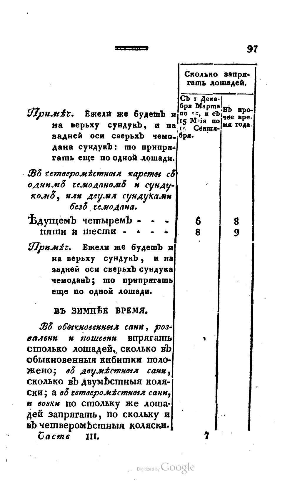 А вот сколько лошадей полагалось на один экипаж (Новѣйшій полный письмовник 1817. С. 804)