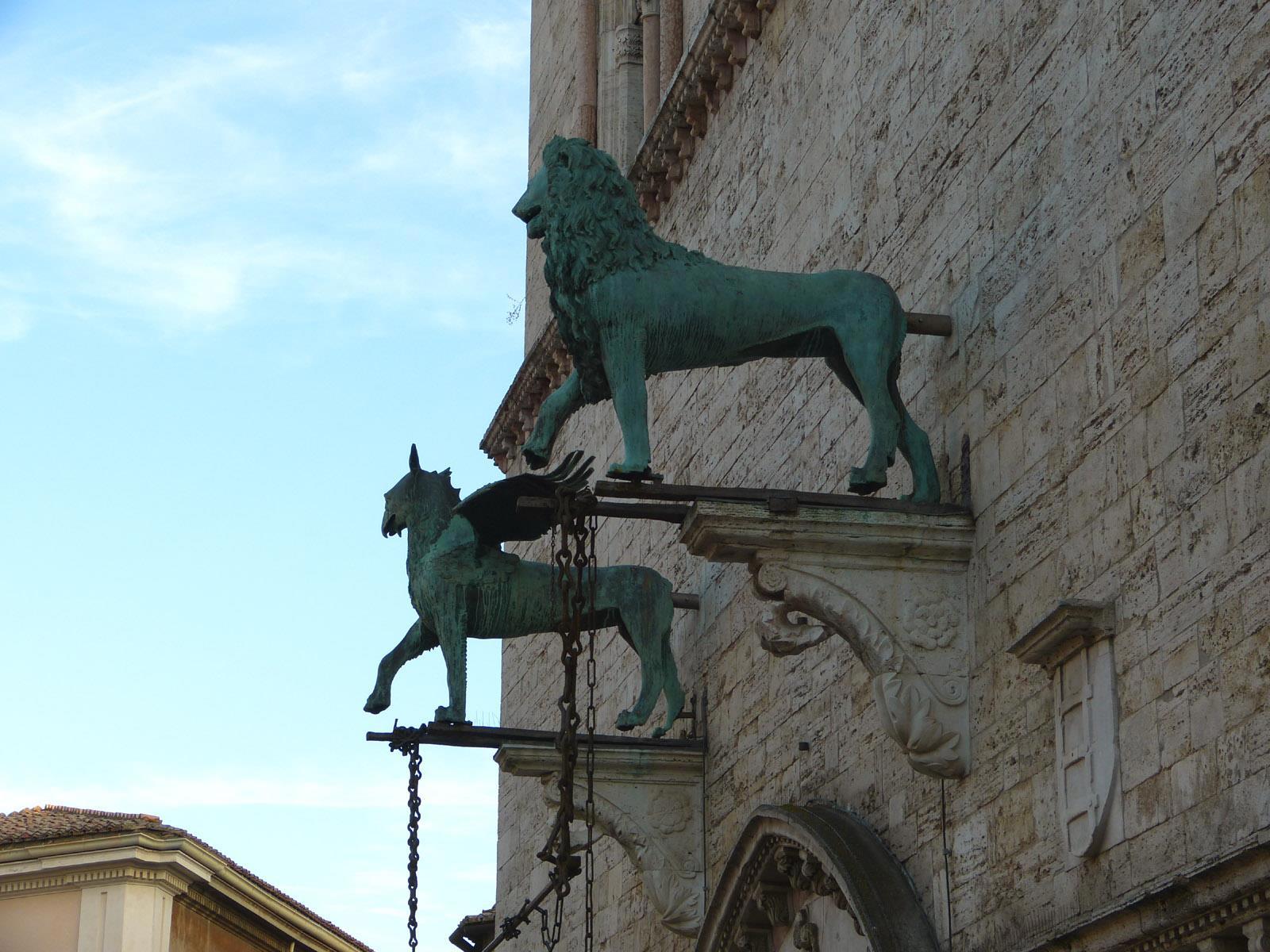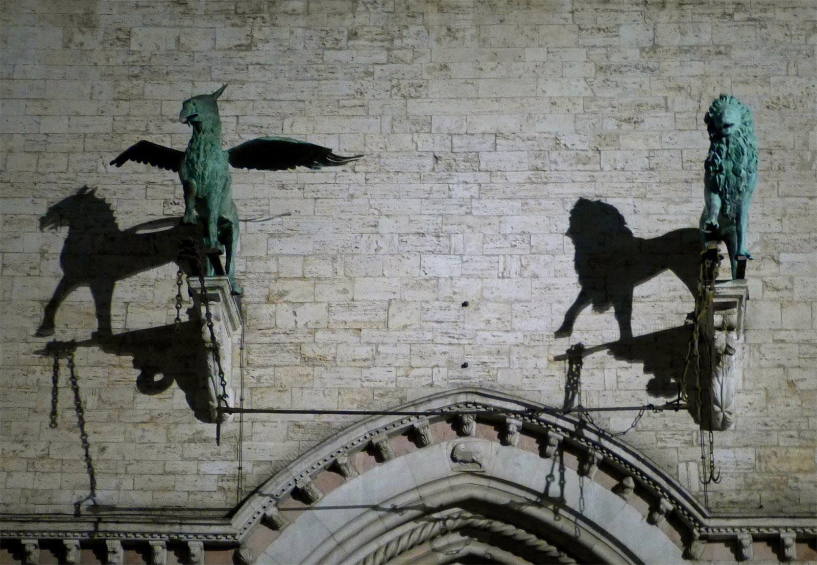 Автор: Д. В. АмурскийСтарый фасад Palazzo dei Priori в Перудже украшают бронзовые изваяния грифона и льва. Эти животные являются символом города.