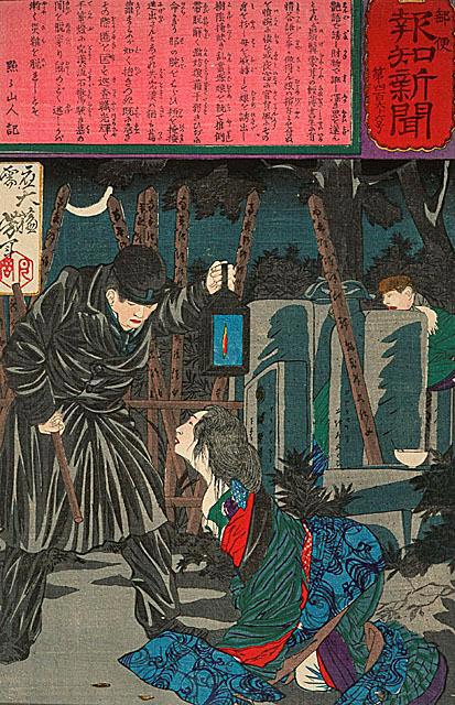 Городской патрульный заманил трех проституток в свои апартаменты и, угостив их едой и саке, злодейски умертвил всех трех девушек мечом.