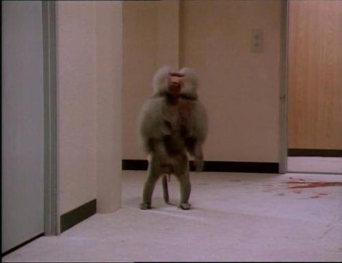 Среди циркачей считается, что сбежавшая из клетки обезьяна, даже скромная по размерам мартышка, гораздо опаснее, чем тигр или лев. Мало того, что обезьяна непредсказуема и может совершенно неожиданно проявить агрессию без видимых причин, так у неё ещё помимо сильных челюстей и острых зубов - четыре "руки", которыми она может наносить достаточно серьёзные рваные раны. Так что, выбрав для своего ужастика бабуина, создатели фильма не промахнулись.