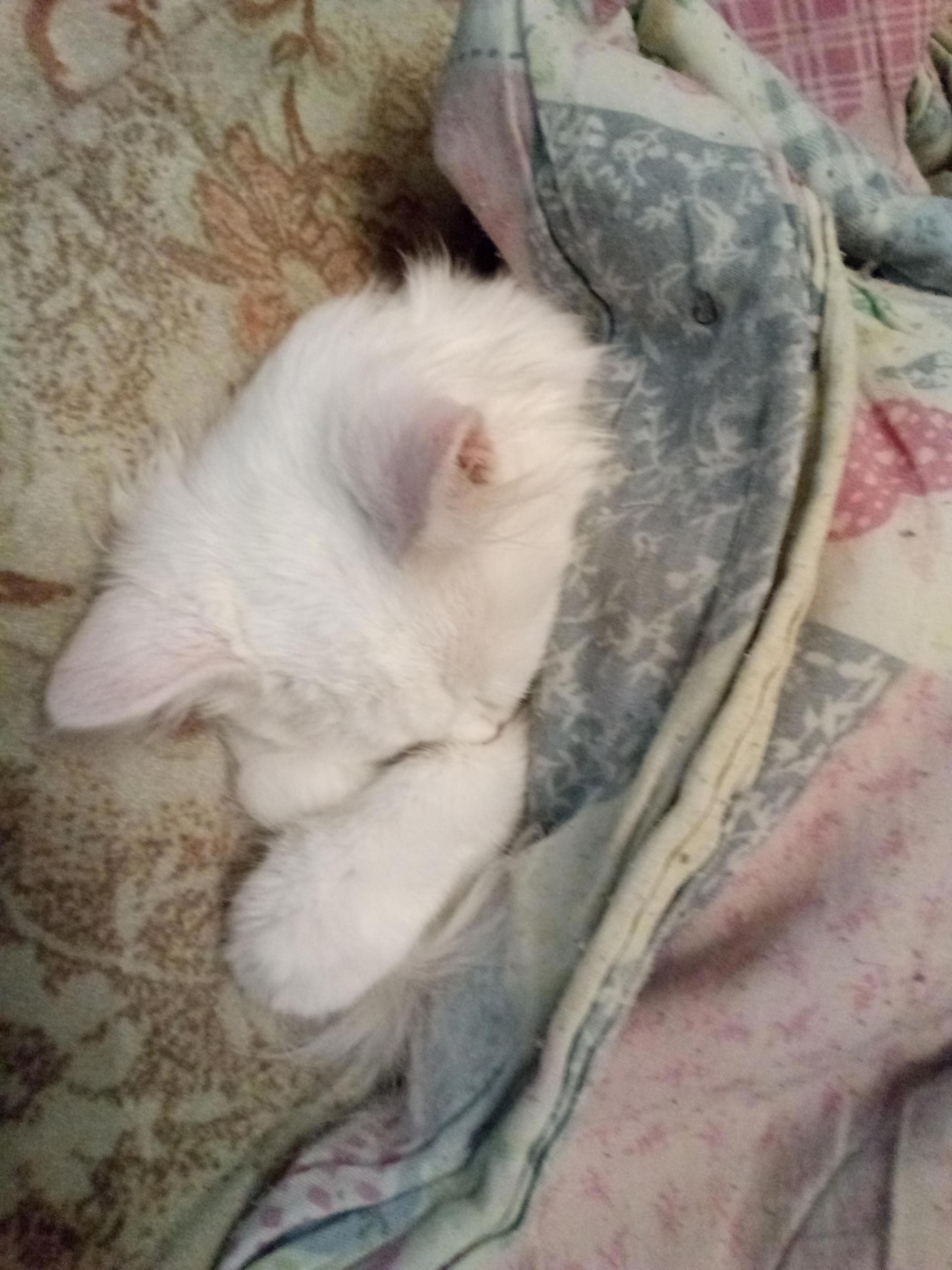 Кошка оказалась породистой ангоркой – пушистой, снежно-белой, голубоглазой и при этом глухой (тоже породный признак у ангорских кошарусов, как выяснилось).