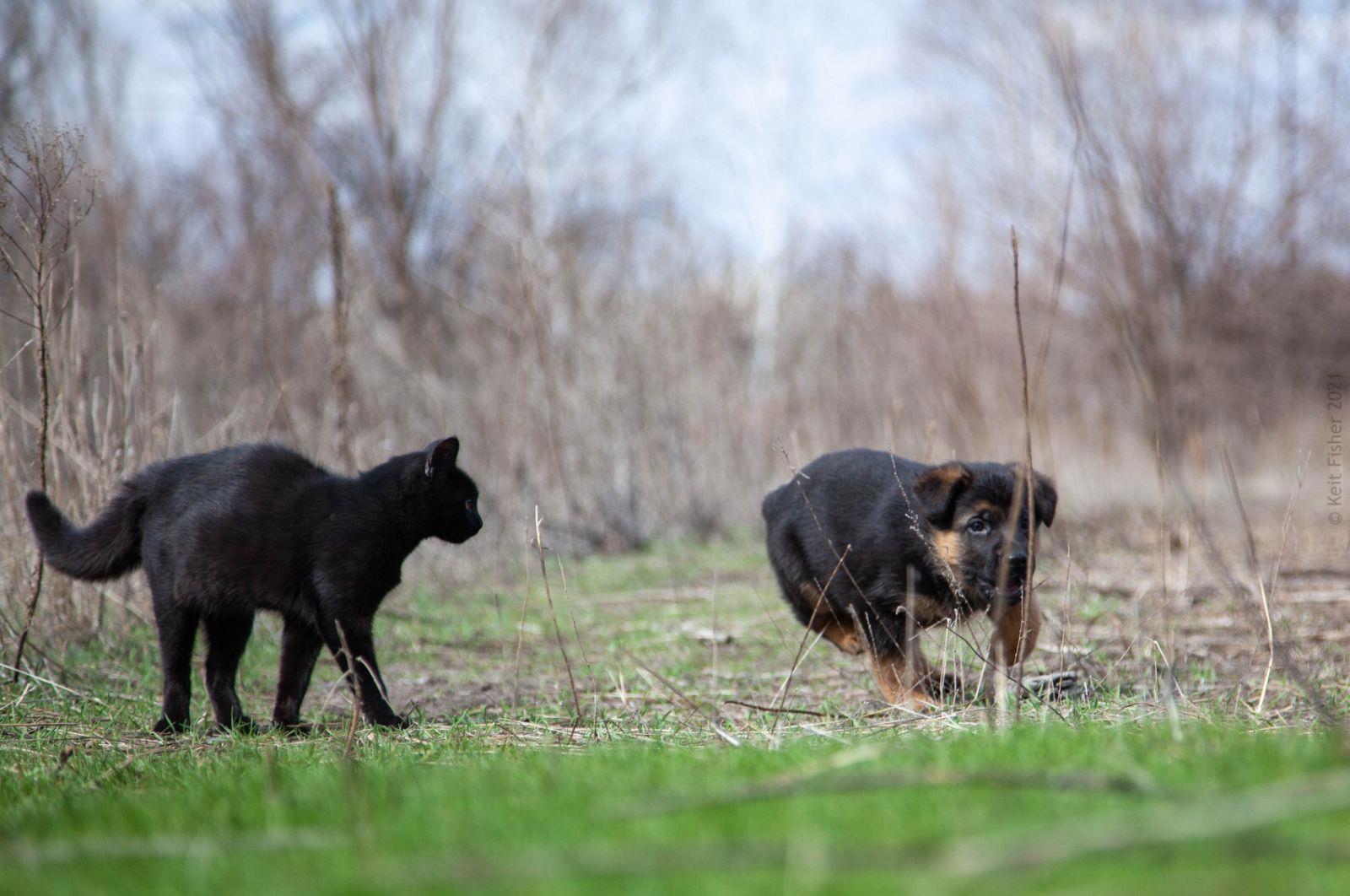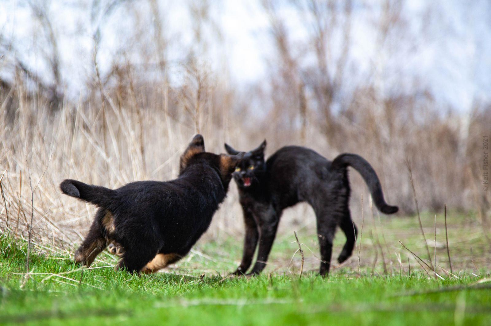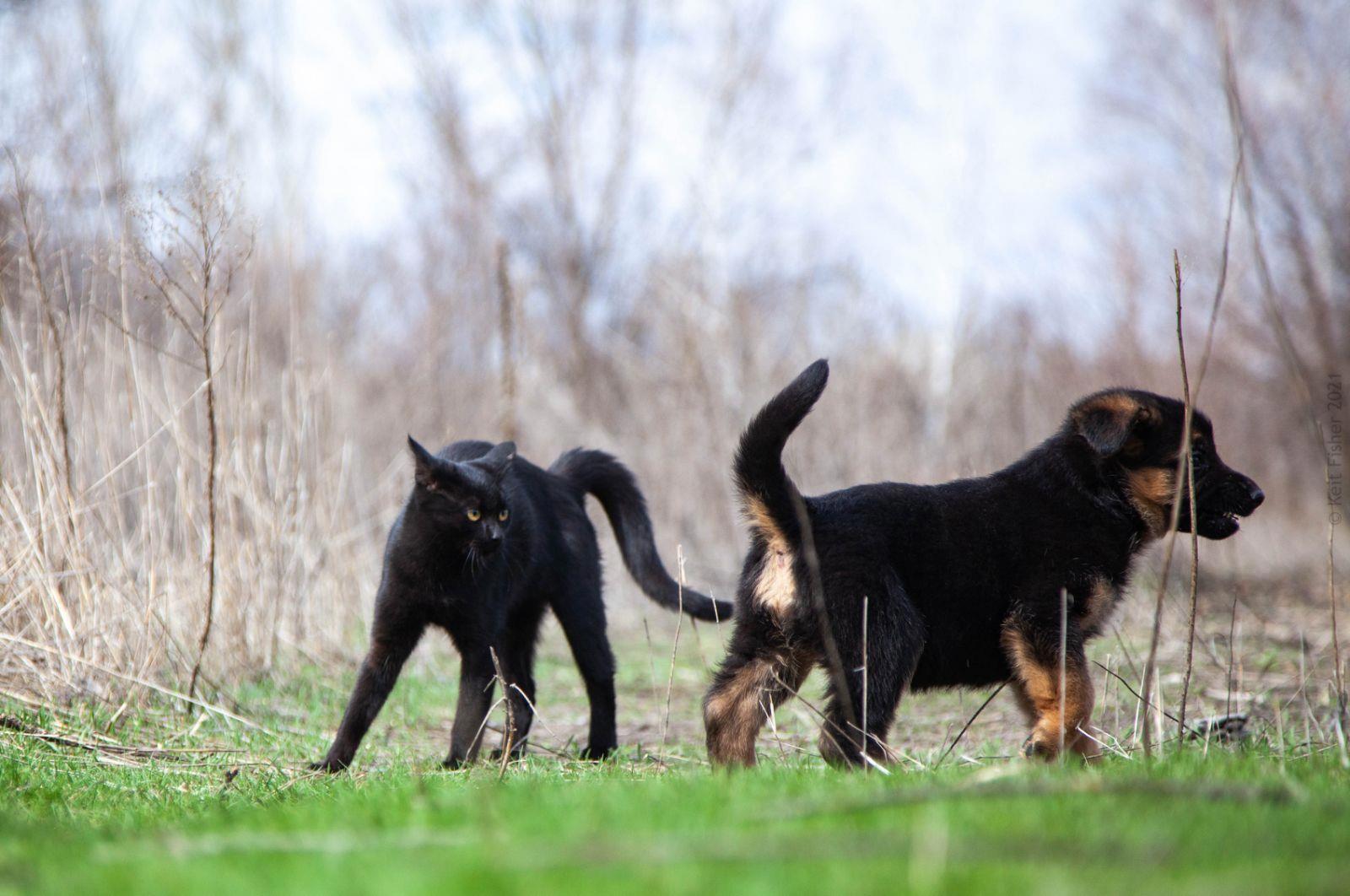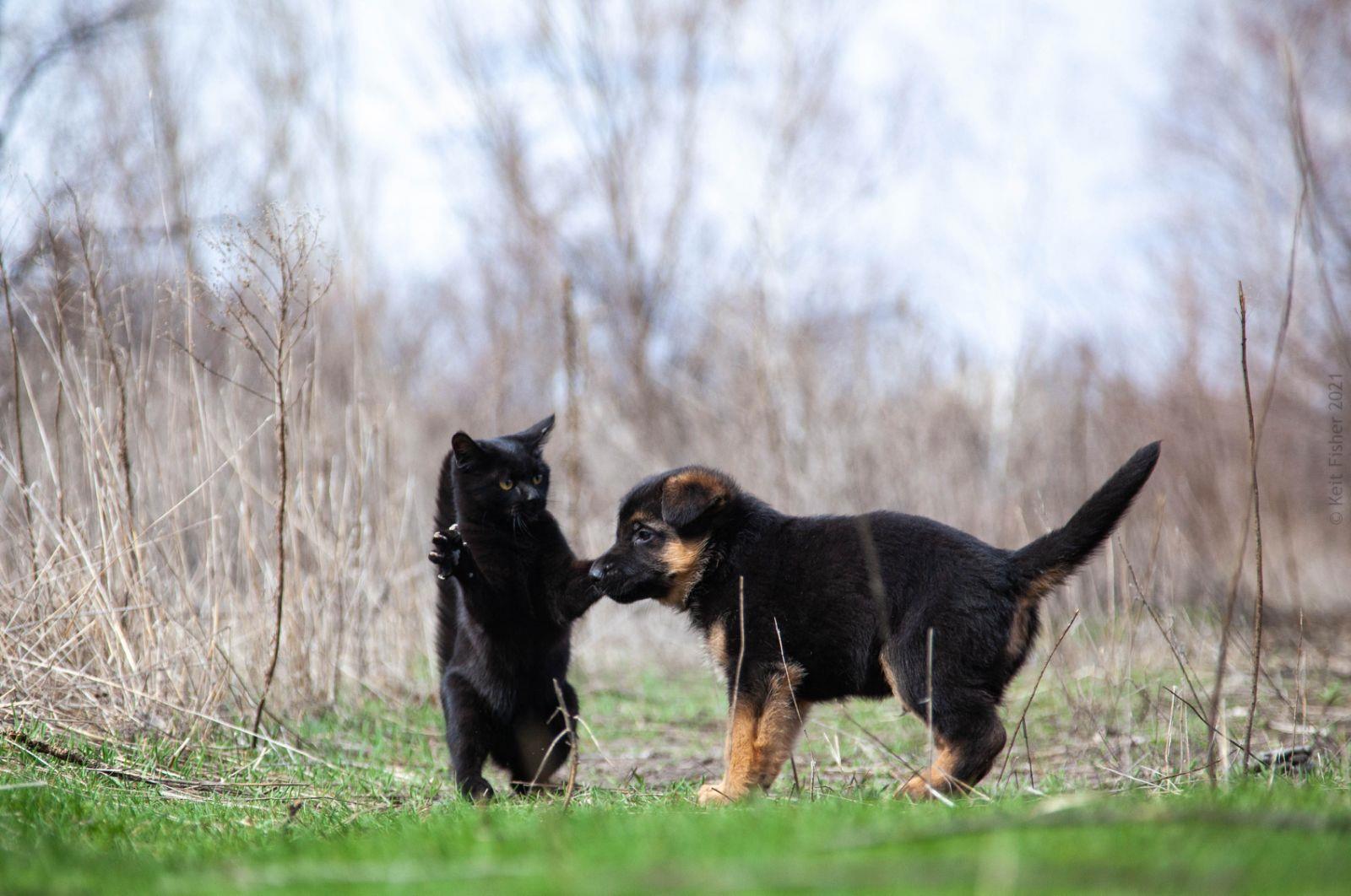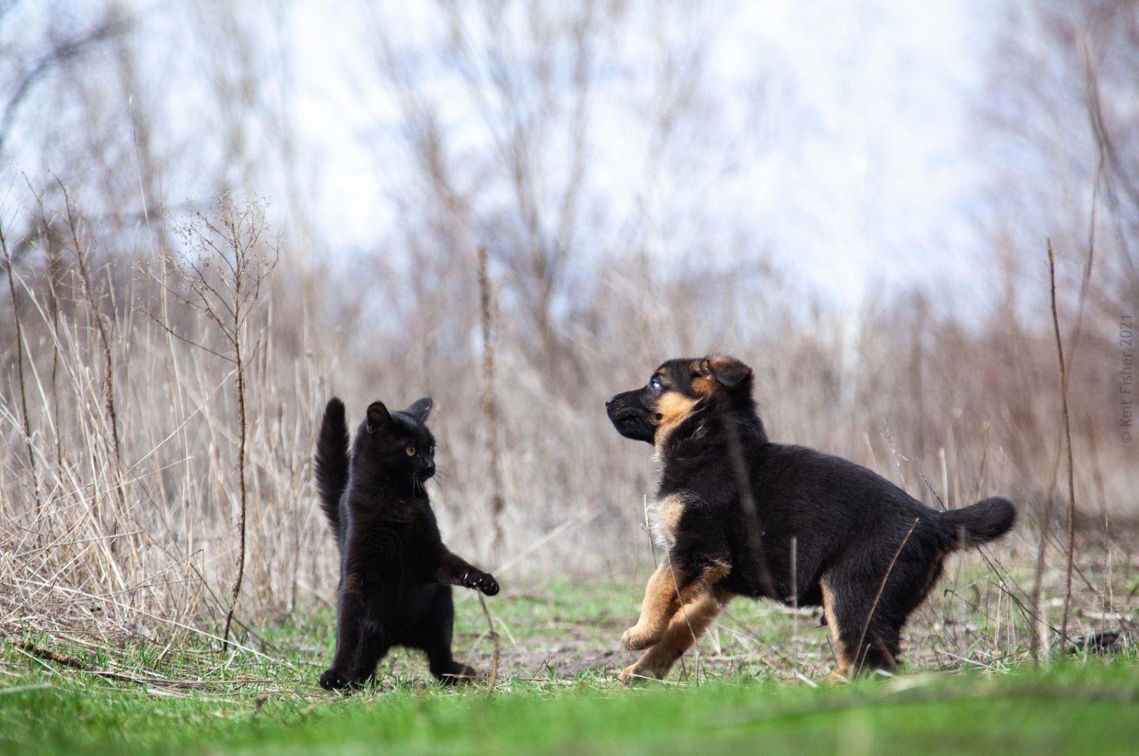 Автор: Вадим СкумбриевНижеследующая серия фотографий демонстрирует героическую борьбу пёсика и котика. Невероятное напряжение, превозмогание, перед которым Танкред нервно курит в сторонке, пафос и потрясающая харизма - здесь есть всё. Смотрите же!