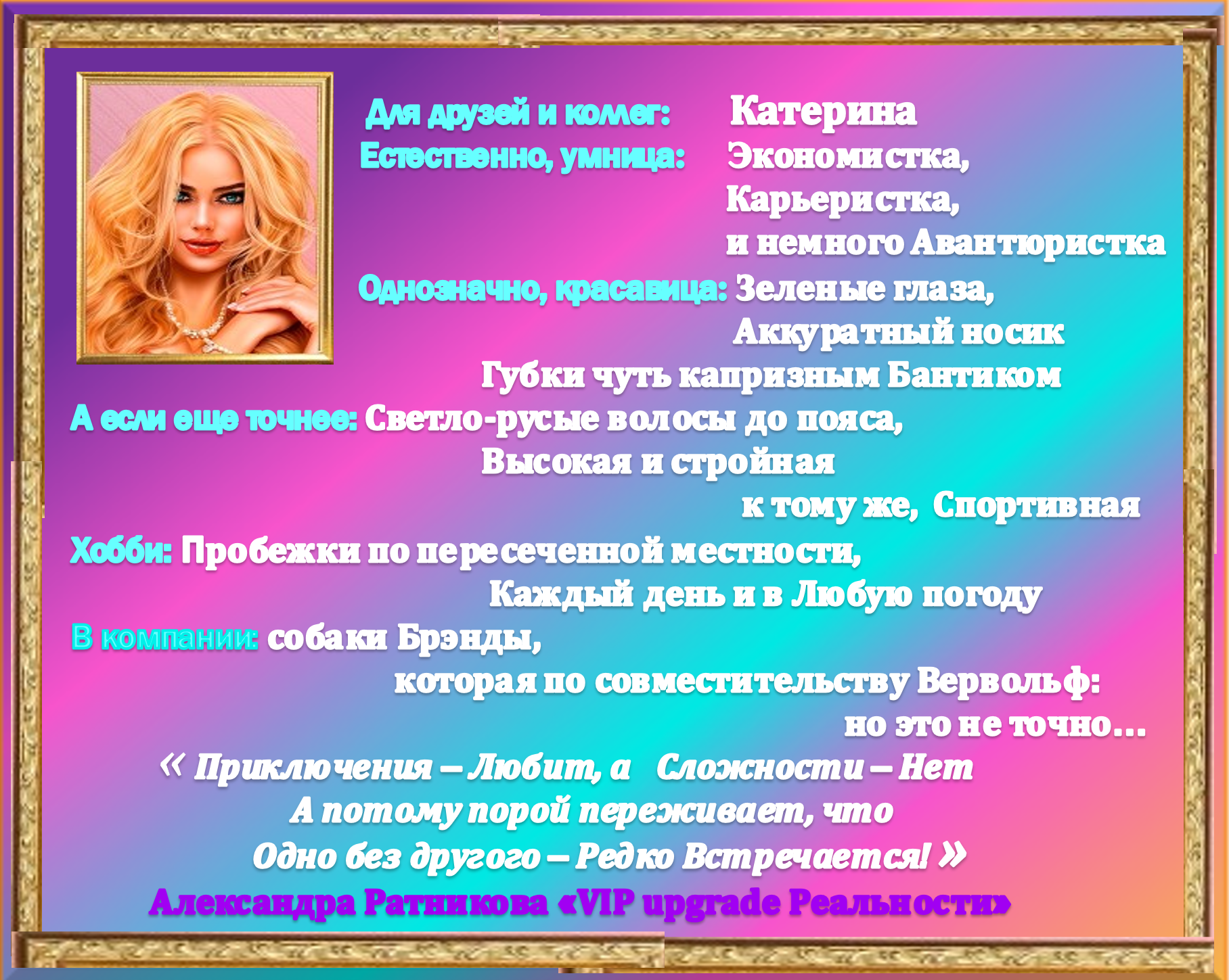 Визуализация главного персонажа: Позитивная, умная и яркая Девушка в «VIP upgrade Реальности»!