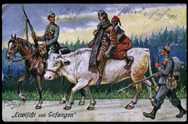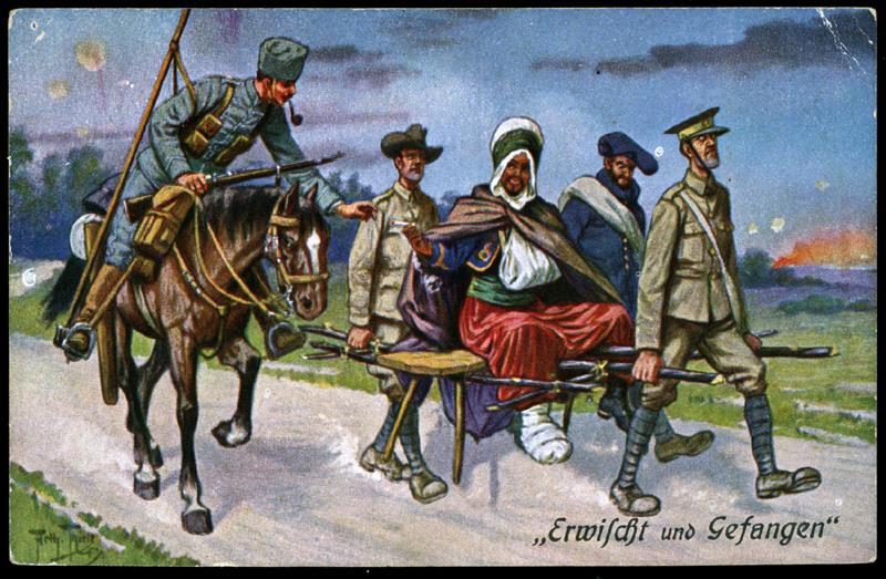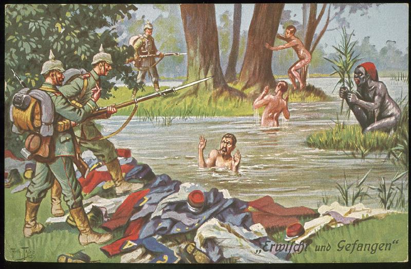 03 Французов берут в плен германцы. Прячется за веточками негр в головном уборе сенегальского стрелка ( Tirailleurs sénégalais )