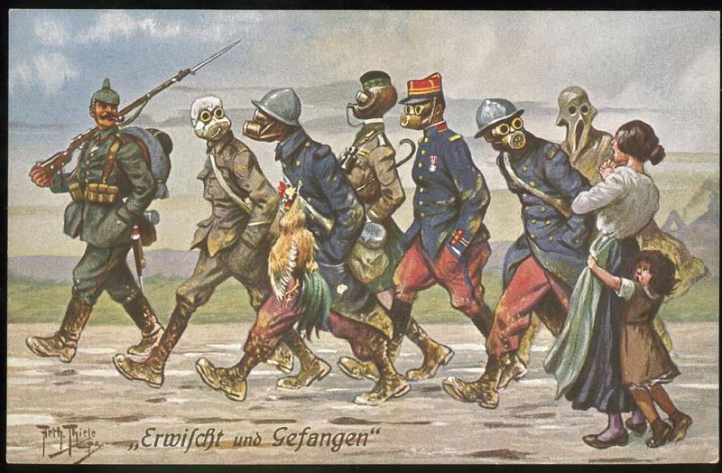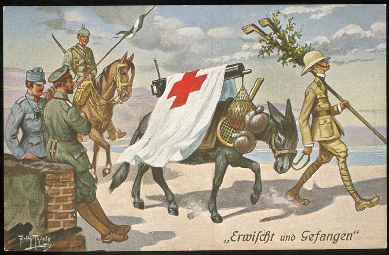 Восемь открыток из серии "Erwischt und Gefangen". Автор - Артур Тиле ( Carl Robert Arthur Thiele ) Карикатурные изображения военнослужащих Антанты идущих в плен . В серии их может и больше , я нашёл только эти.
