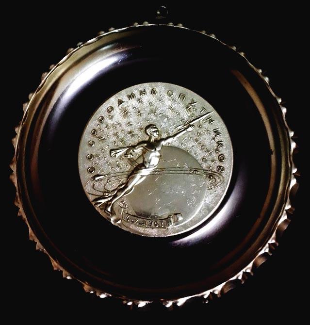 (Фото семейной реликвии - декоративной ттарелки, купленной незадолго до первого полёта человека в космос. Алюминий, эмаль)