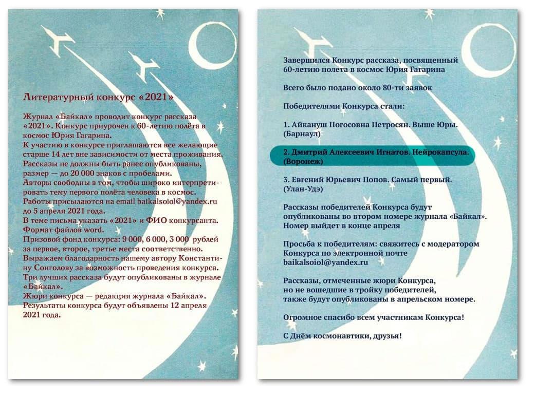 Завершился литературный конкурс "2021" журнала "Байкал", посвящённый космической тематике.
