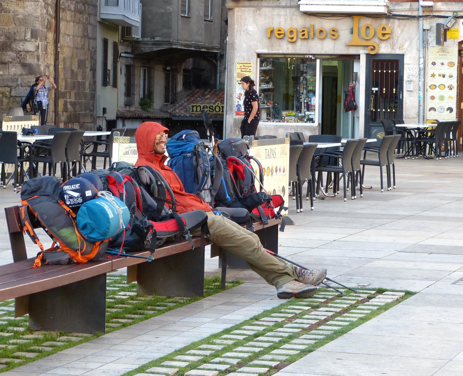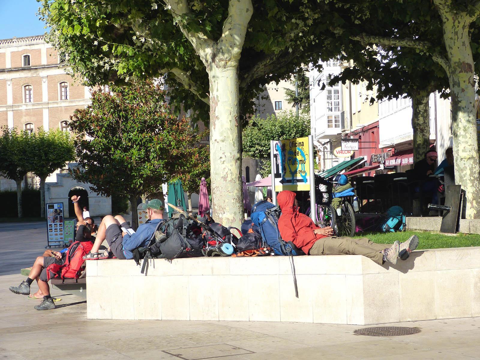 Не знаю, получится ли у них такими темпами дойти до Сантьяго-де-Компостела, но вот с ракушками на рюкзаках у этих паломников был полный порядок!