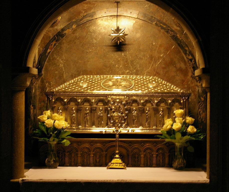 Рака с мощами святого Иакова (по-испански — Сантьяго) в соборе города Сантьяго-де-Компостела, главная цель паломников. Кстати, в средние века испанский вариант имени апостола стал боевым кличем испанских войск, с которым они бросались на врага.