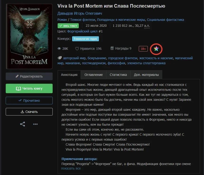 Собственно, именно на такой проработке я и доехал до финала "Технологии чудес" и до заветной звёздочки радужного цвета, которой администрация АТ помечает, как знаком качества, то, что считает годным чтивом. Можете быть уверены: настолько непопулярный чувак, как я, мог получить эту звезду только лишь за степень проработки.