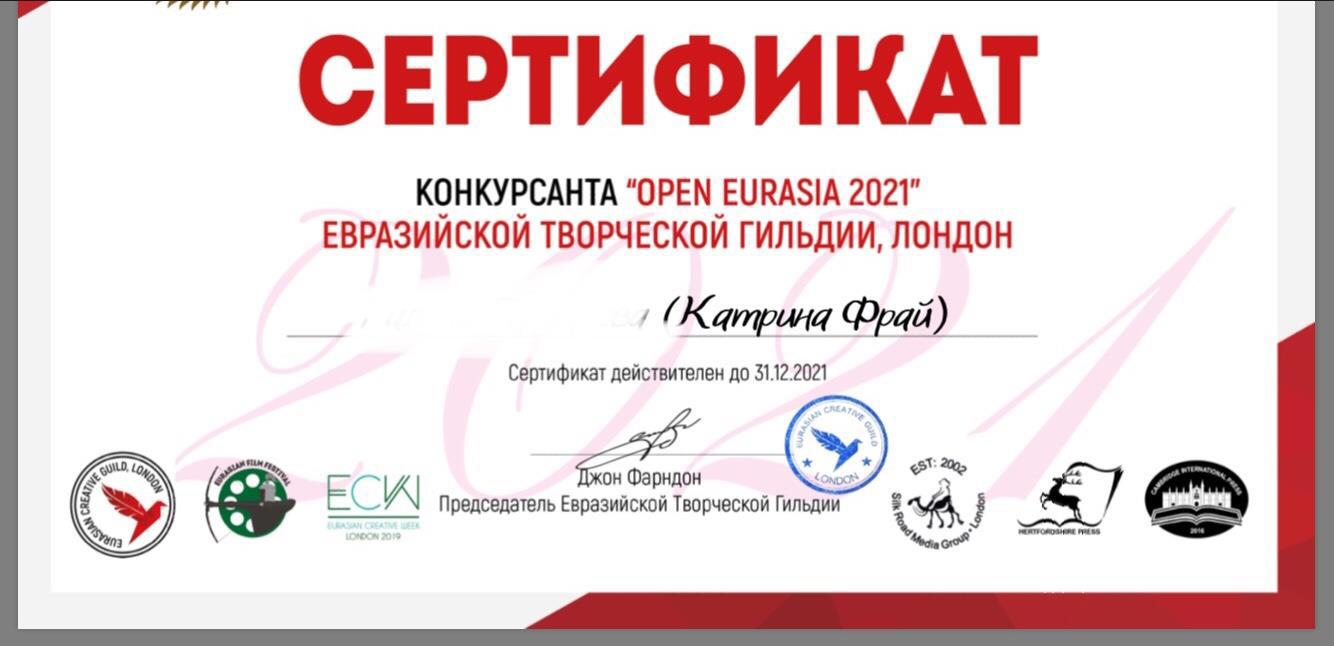 P.S хочу с вами поделиться небольшой радостью. Меня зачислили в Евразийскую творческую гильдию, что дало мне возможность поучаствовать в международном конкурсе.