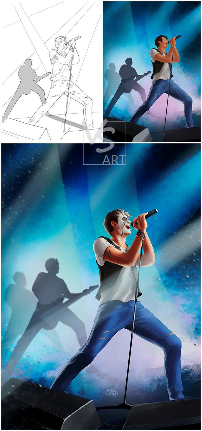Автор: Салихов ВасильЗадача стояла предельно простая, но с выбором ракурса мне пришлось повозиться. Главный герой имеет некую тень, которая похожа, но выглядит по другому, стоит с гитарой, а не микрофоном. Сложность заключалась в том, чтобы не закрыть ту самую тень и, при этом, сделать смысл максимально понятным.