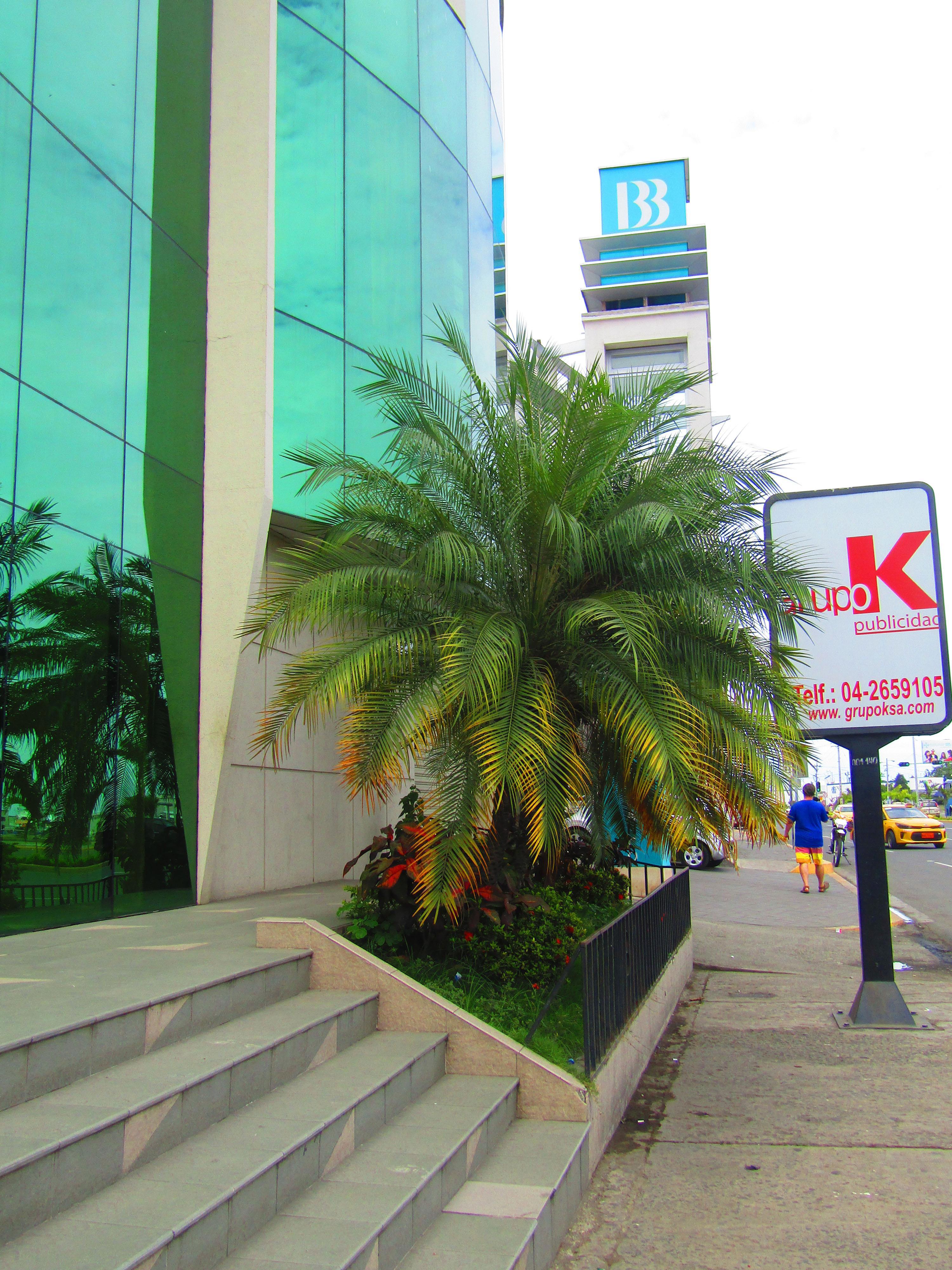 Маленькая компактная пальмочка возле банка.