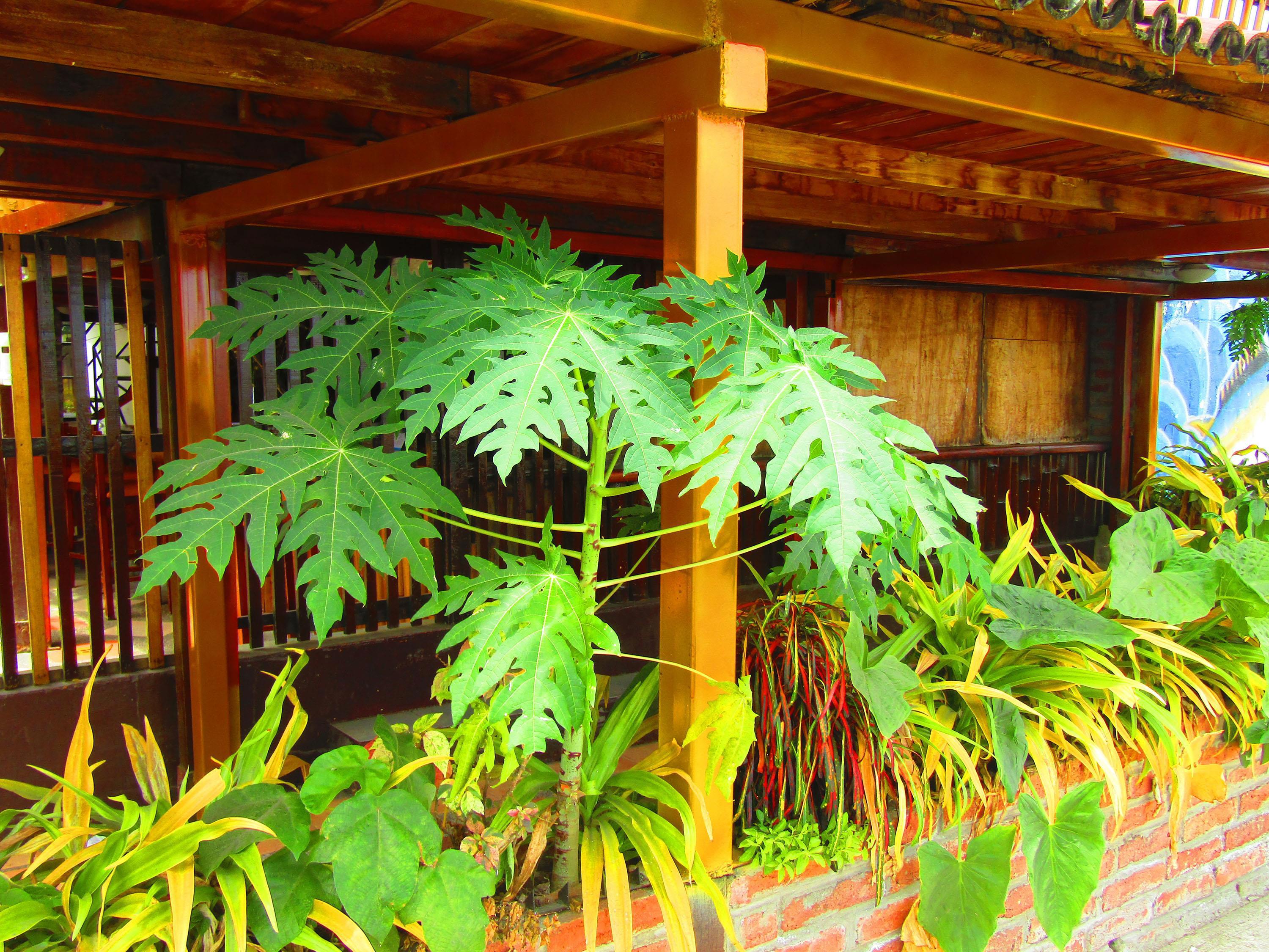 Папайя. На самом деле это такая трава, хоть и вымахивает большая и дает вкусные плоды. Эта еще мелкая и плодов не дает.