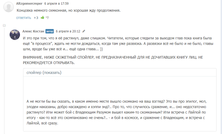 Теперь в эпилог гораздо больше по размерам, добавленный в него текст находится ниже. Финал книги расширился с 44-х до 49-ти тысяч символов, что внушает!
