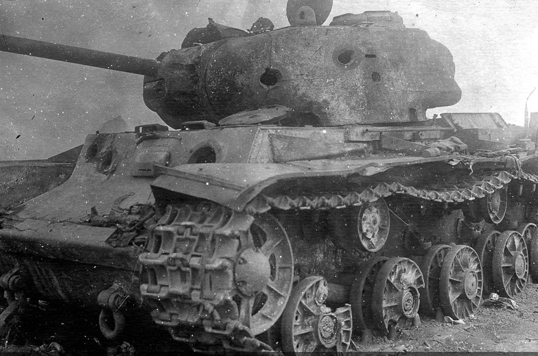 КВ-1 с экранами брони. Пробития в башню от 88 мм. орудия.