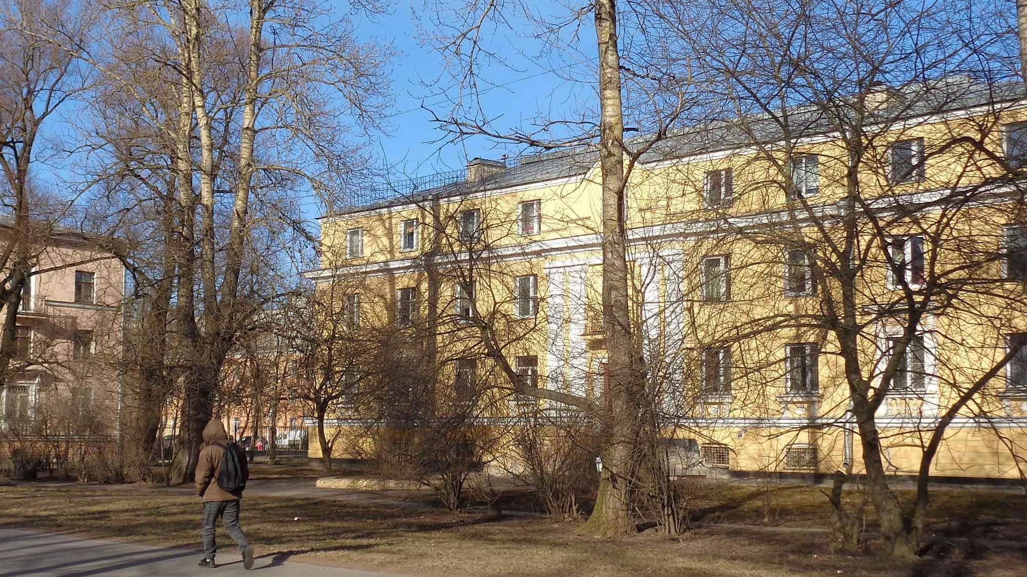 Земля ещё голая. Деревья тоже. А это - квартал у станции Лигово, который создавал архитектор А.А. Оль: