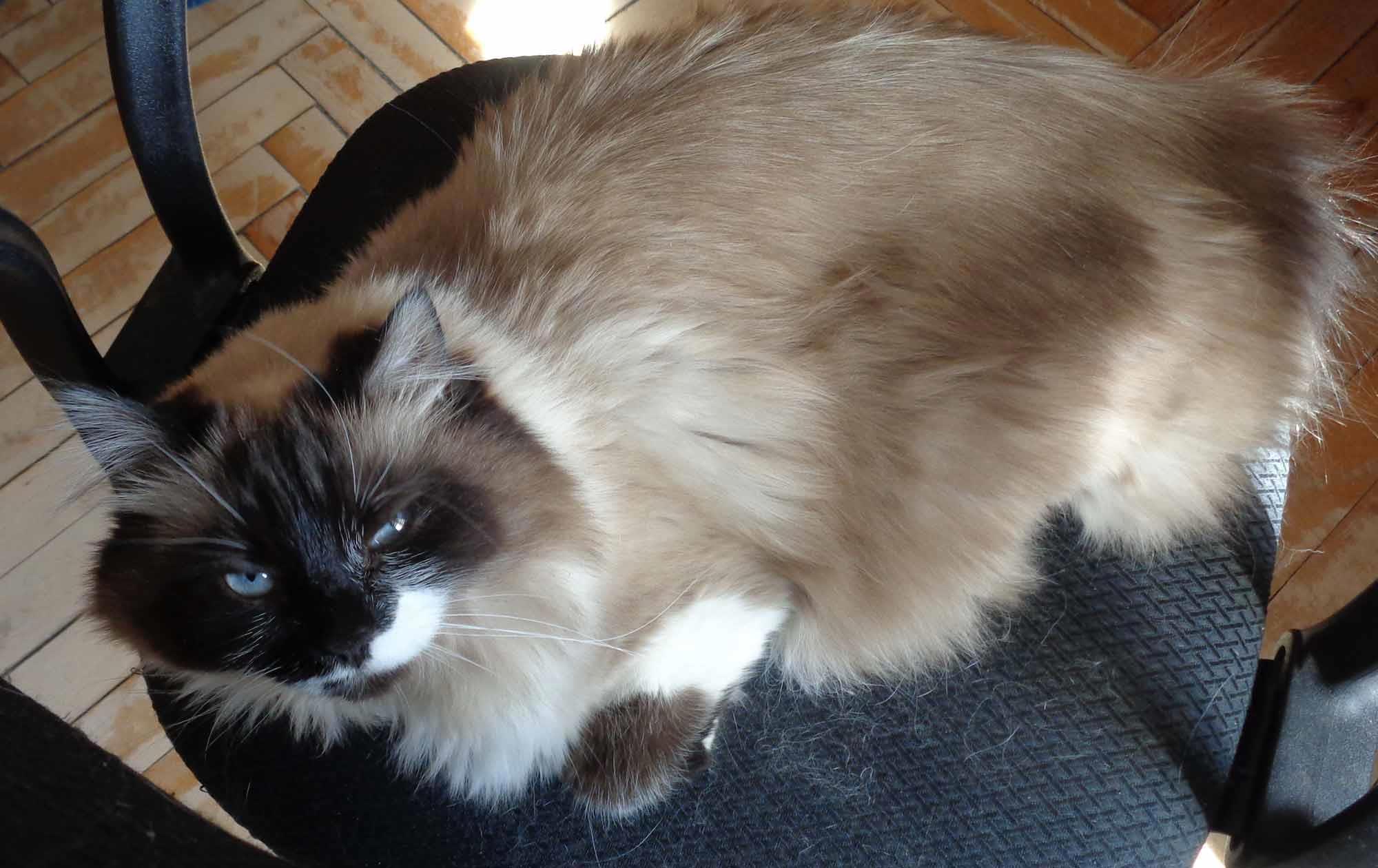 Большая киса, 5 кило, занимает весь компьютерный стул: