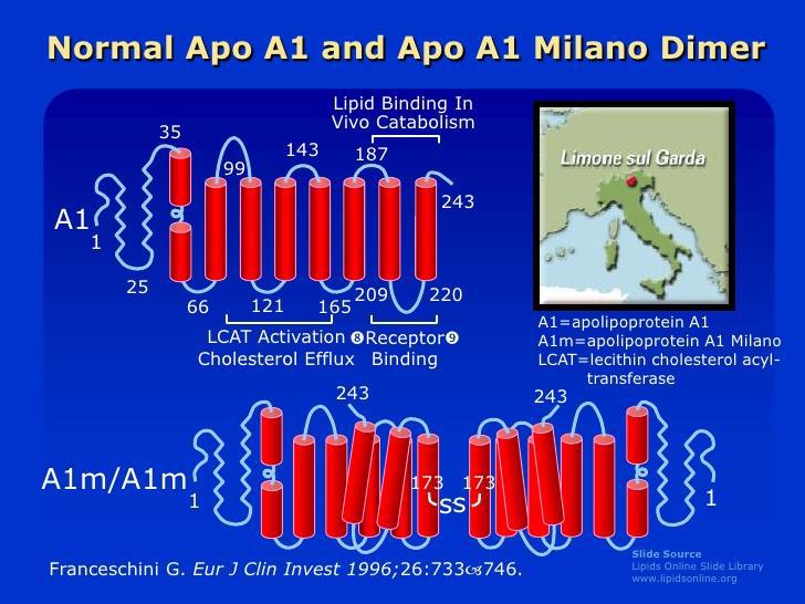 Врачи оказались заинтригованы. После обследования отца и детей Валерио выяснилось, что и у них рекордно низкий уровень ЛПВП сочетается с замечательным состоянием сердечно-сосудистой системы. И тогда Чезаре Сиртори смог установить, что все они являются носителями мутантного гена, обеспечивавшего их особой формой апипопротеина, ApoA-1 Milano. Этот белок чистил их сосуды от холестерина гораздо эффективнее, чем его аналоги у обычных людей.