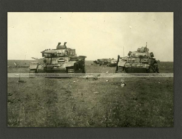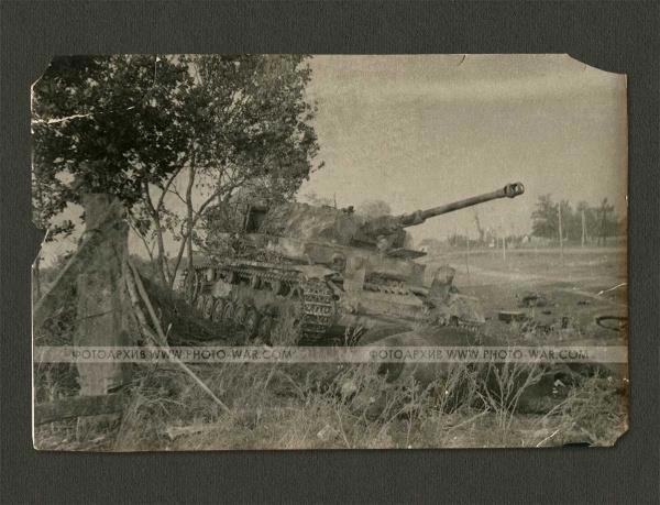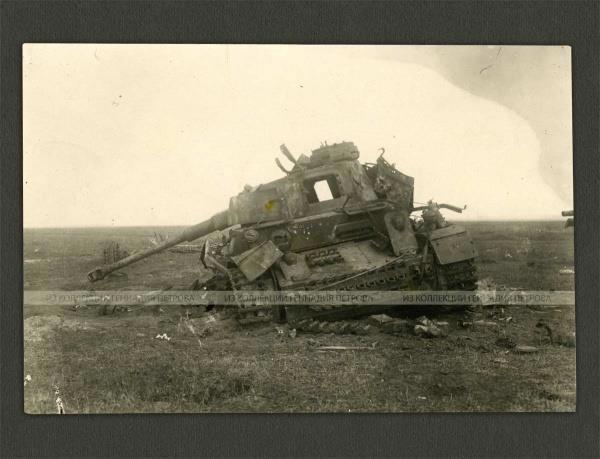Автор: Николай БергКак обещал - теперь немецкая бронетехника. Т-4 с развороченным боком. ИМХО - крупного калибра прилетело