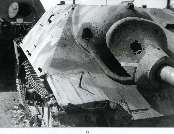 Хетцер с орудийной маской "свиная голова". Две пробоины в маске 76,2.